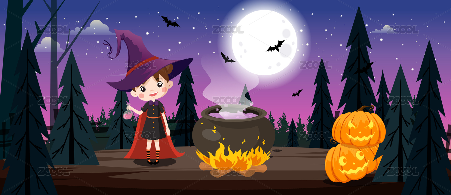 萬圣節(jié)小巫師巡游,手繪插畫
