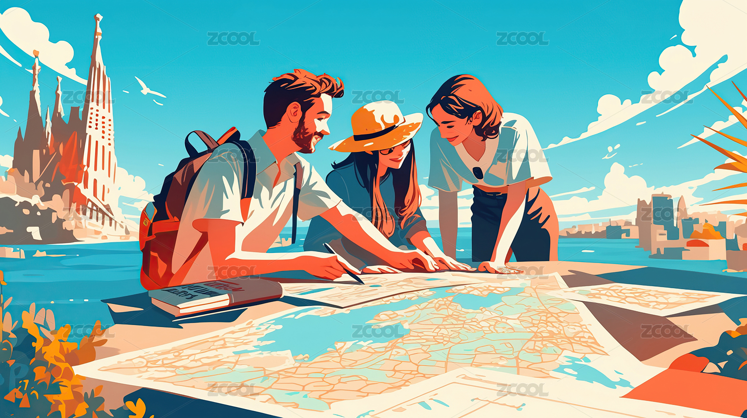 旅游景點打卡做攻略交通游玩游樂建筑優(yōu)美插