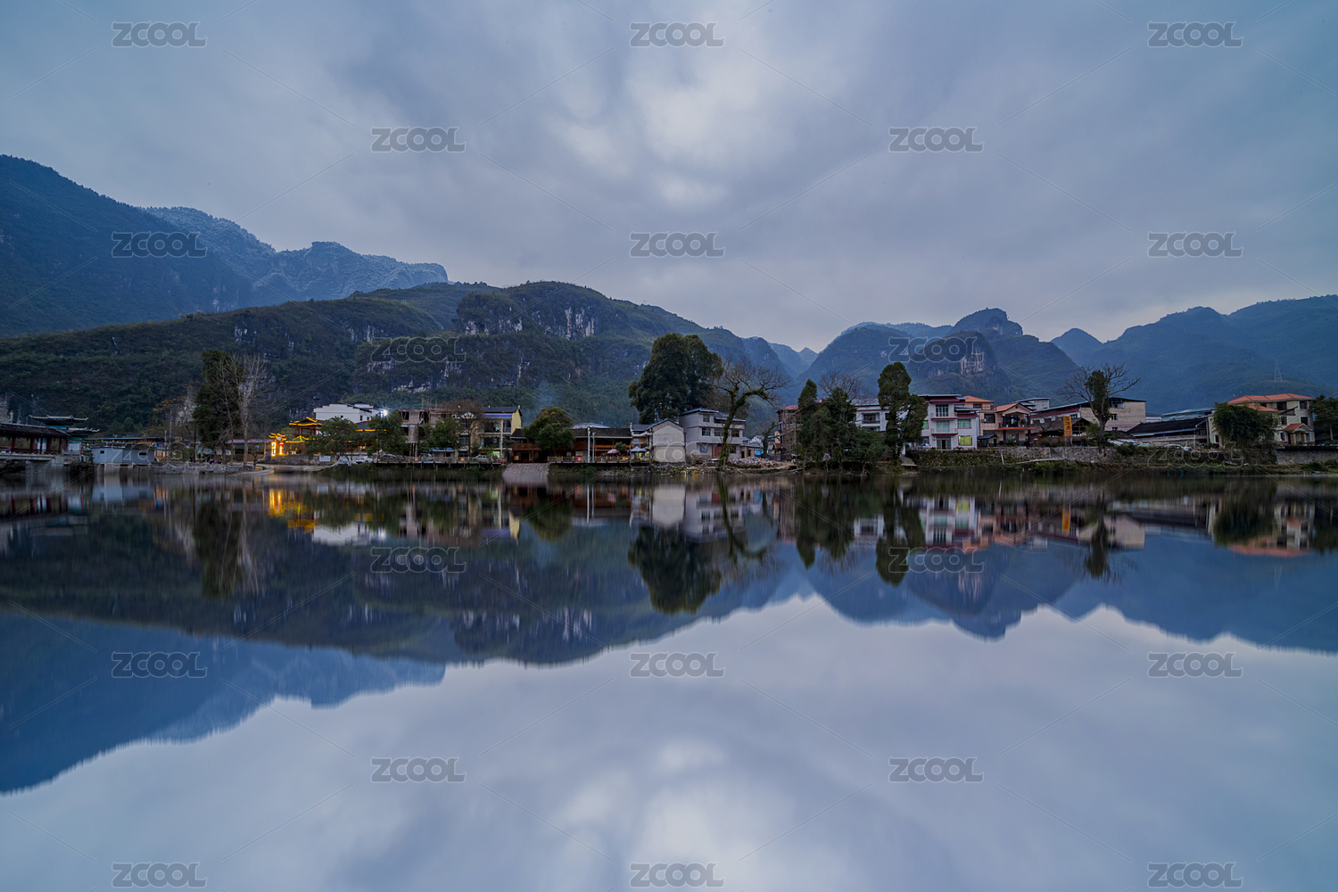 寧波水鄉(xiāng)古民居,春節(jié)福字裝飾與水面倒影