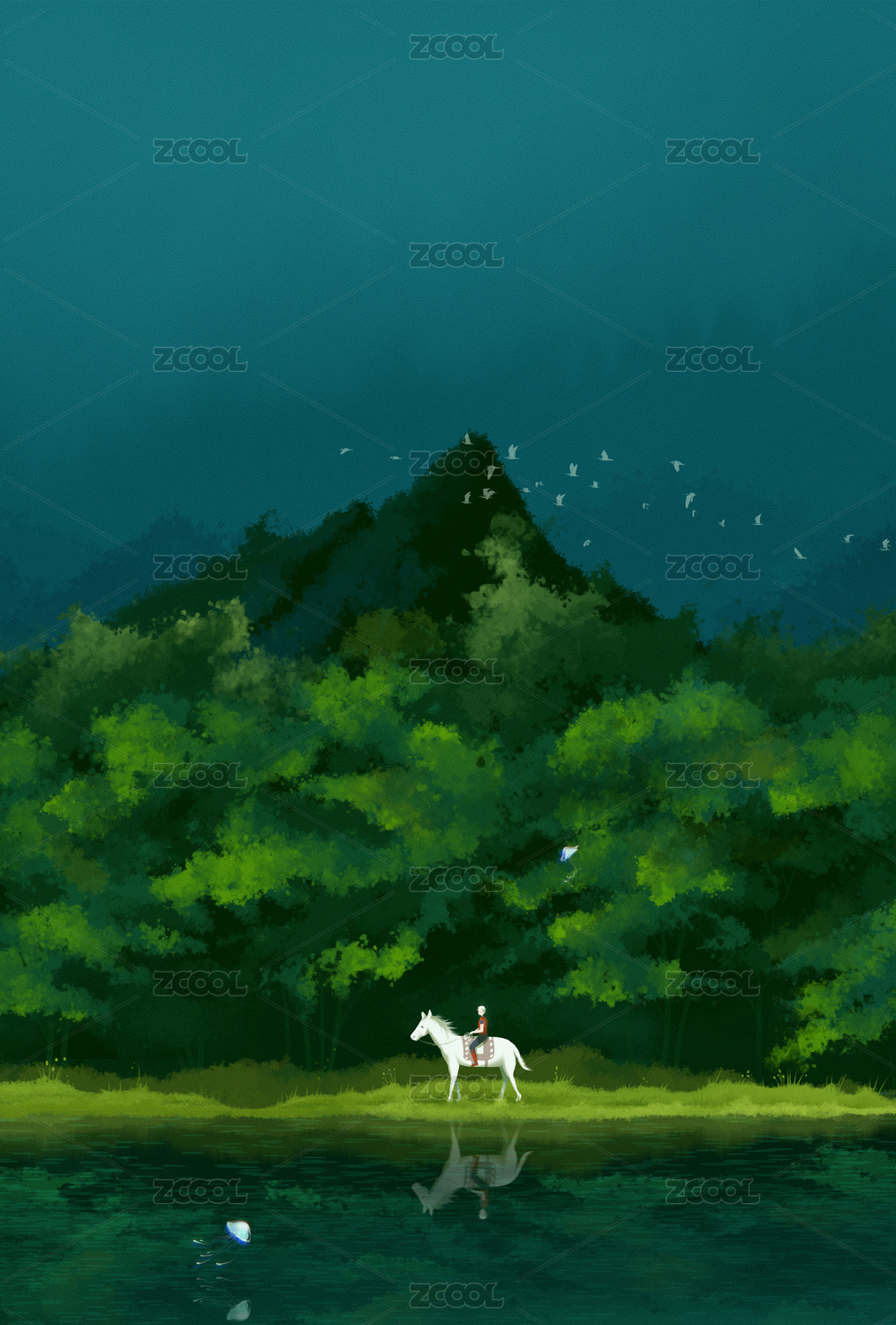 森林中騎馬的少年創(chuàng)意插畫-豎圖