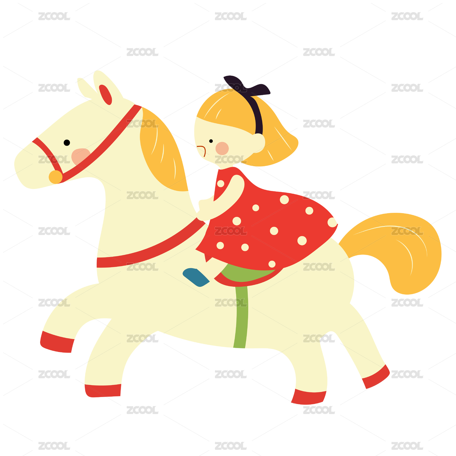 小女孩騎馬可愛(ài)兒童手繪人物插畫