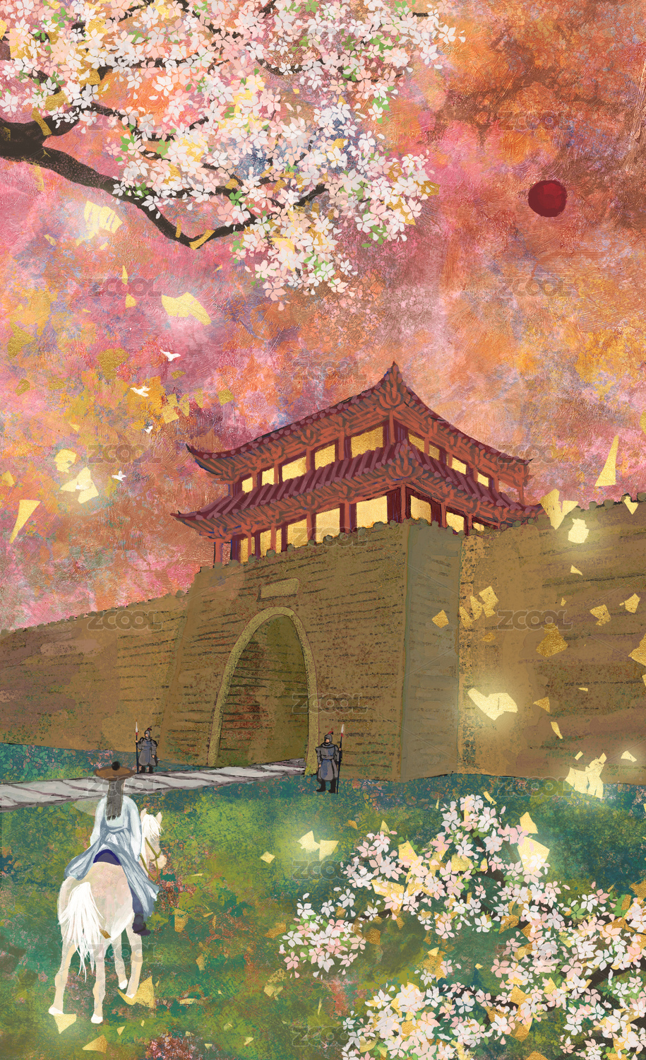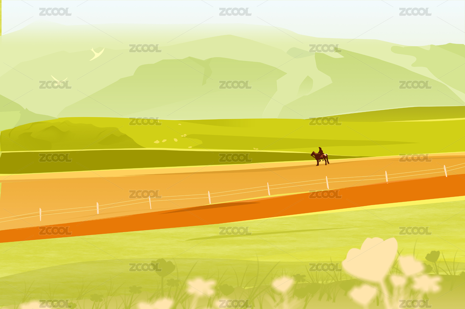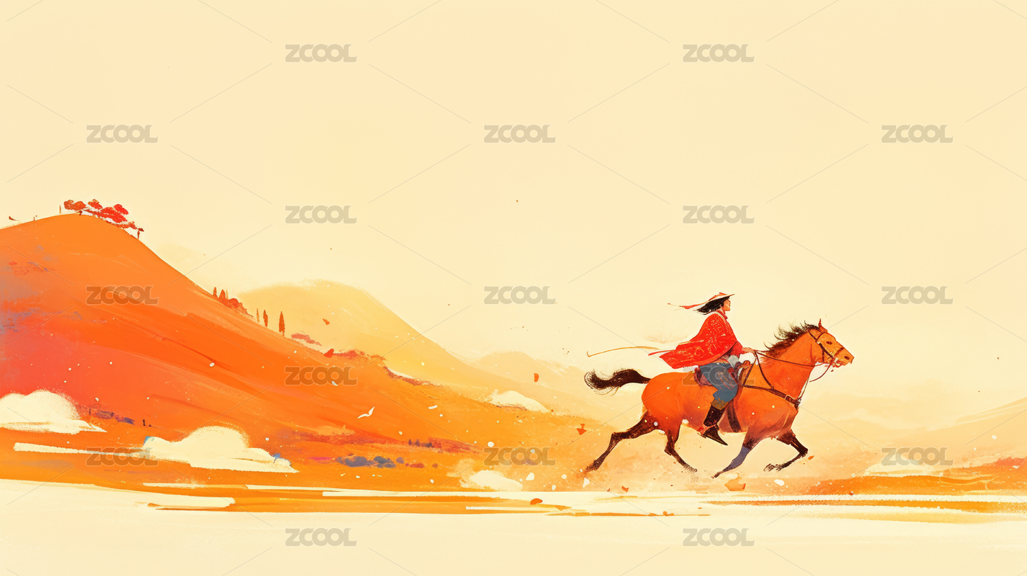 治愈系孤獨(dú)感騎馬的人白云插畫