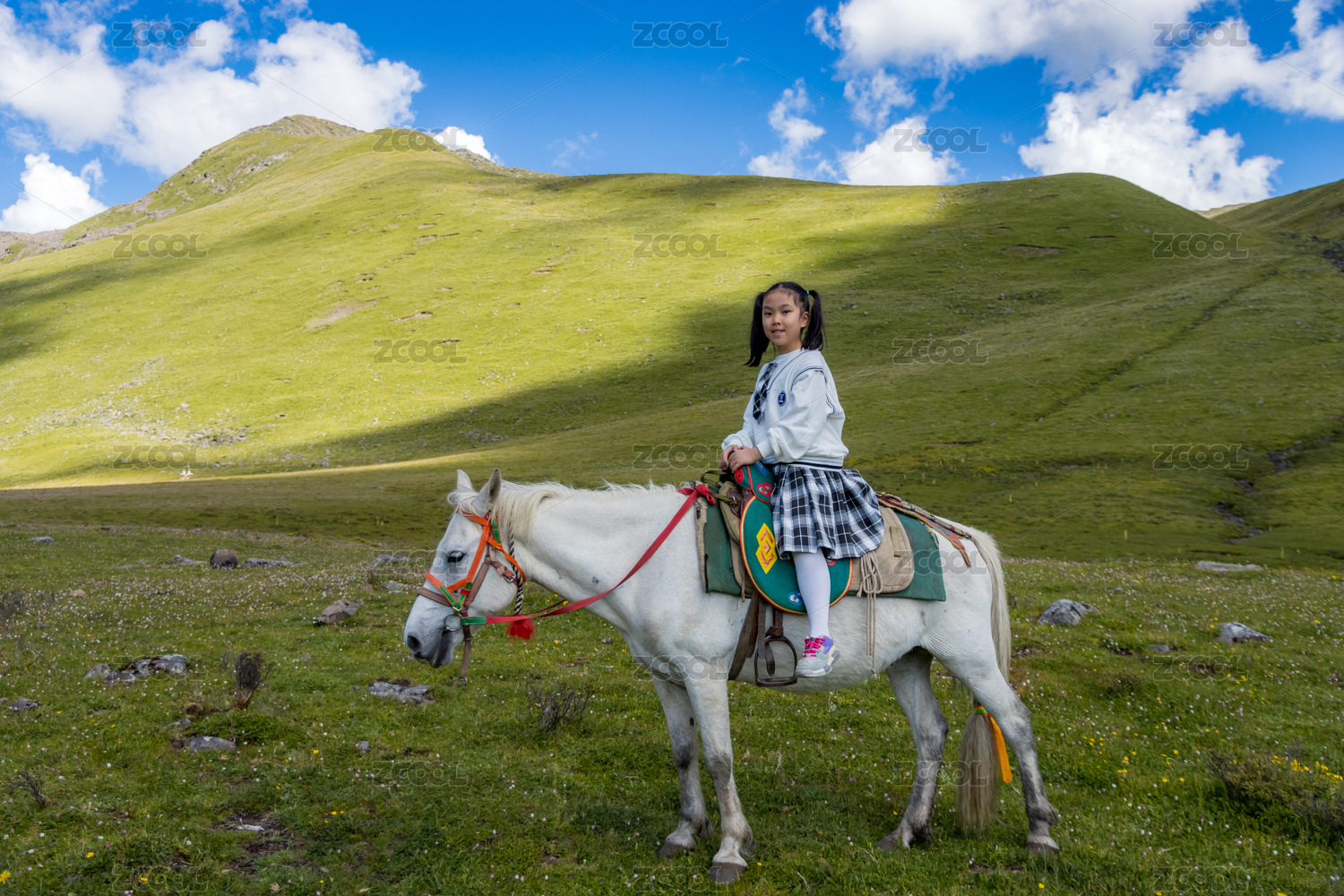 中國(guó)內(nèi)蒙古自治區(qū)輝騰錫勒草原騎馬的游客
