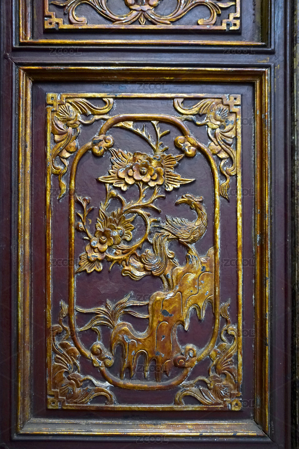 越南海防市 傳統(tǒng)風(fēng)格餐廳雕花木門局部