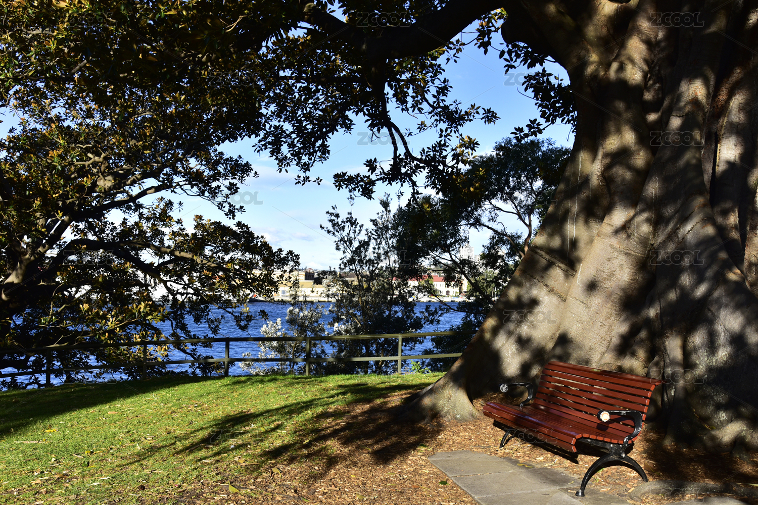 澳大利亞悉尼皇家植物園公園草地大樹(shù)坐椅