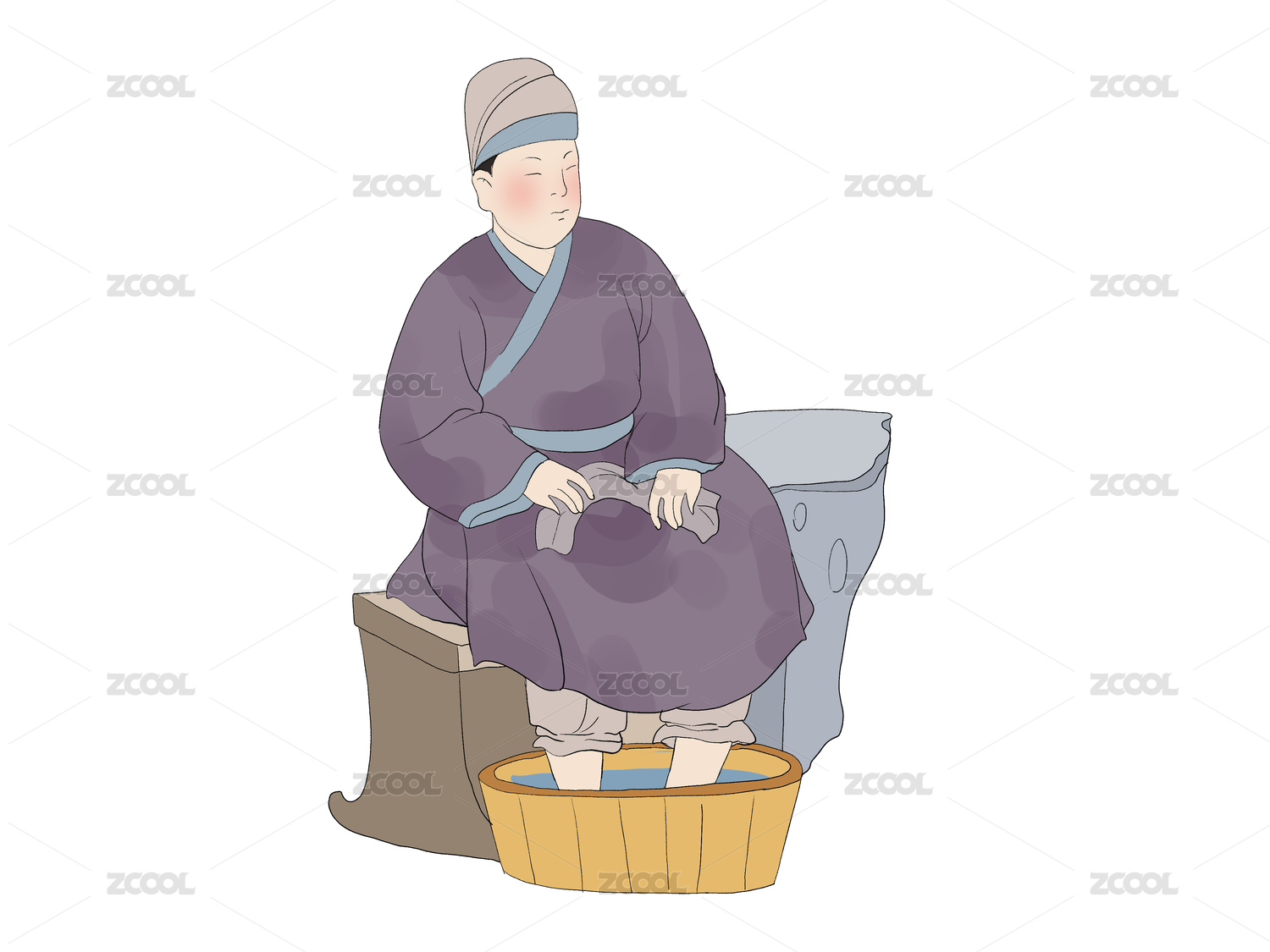 養(yǎng)生泡腳古風(fēng)人古裝紫色衣服男士坐椅子上