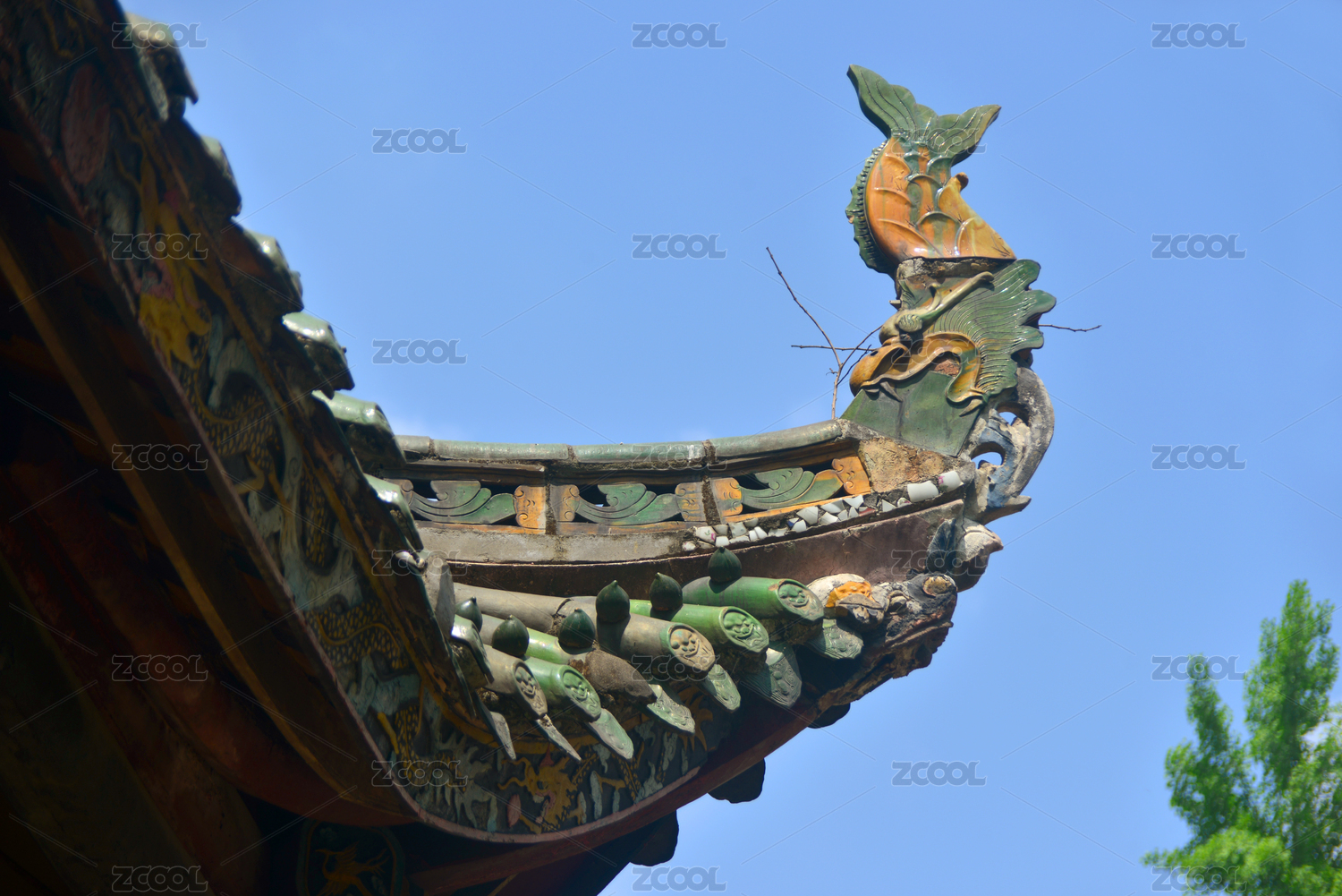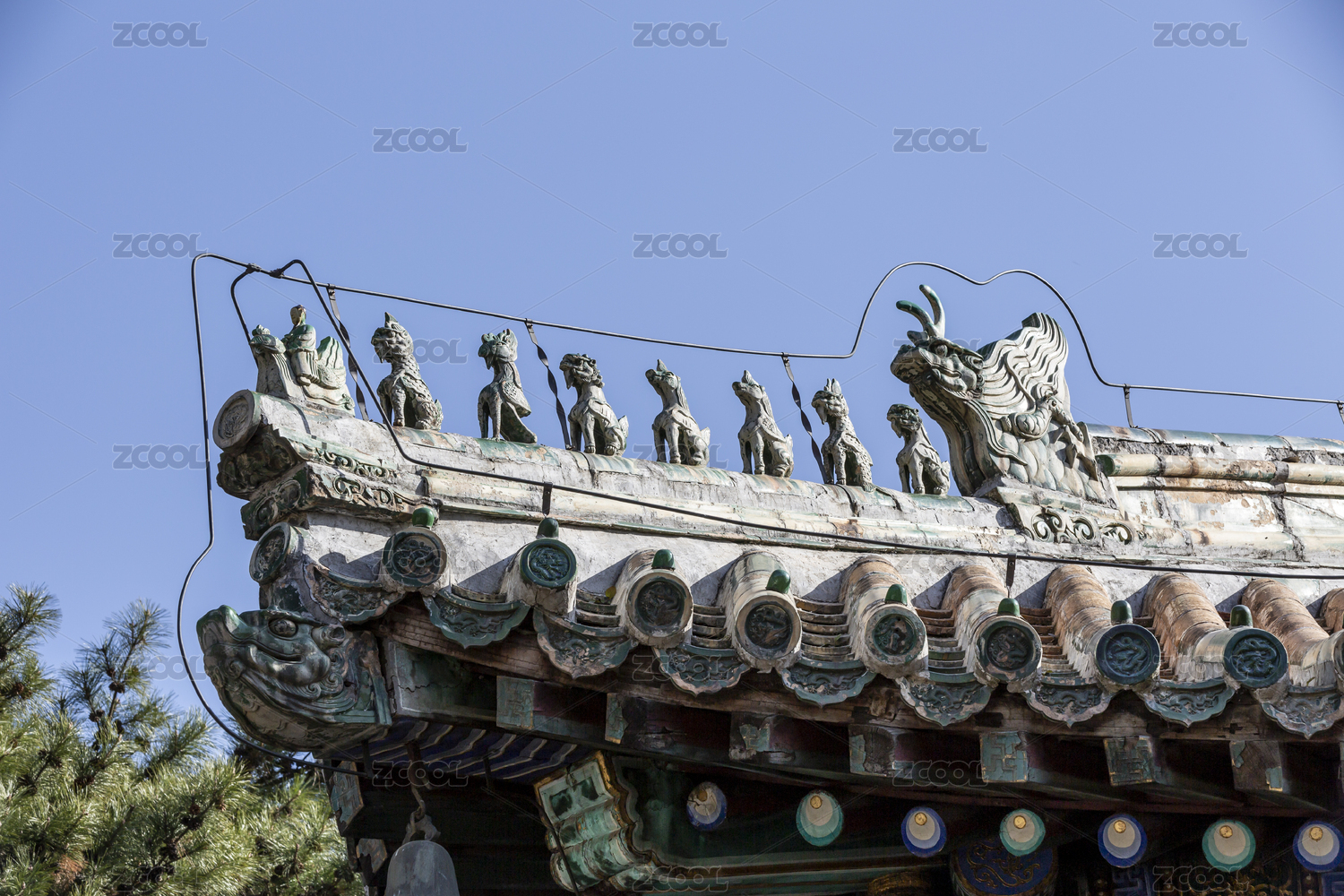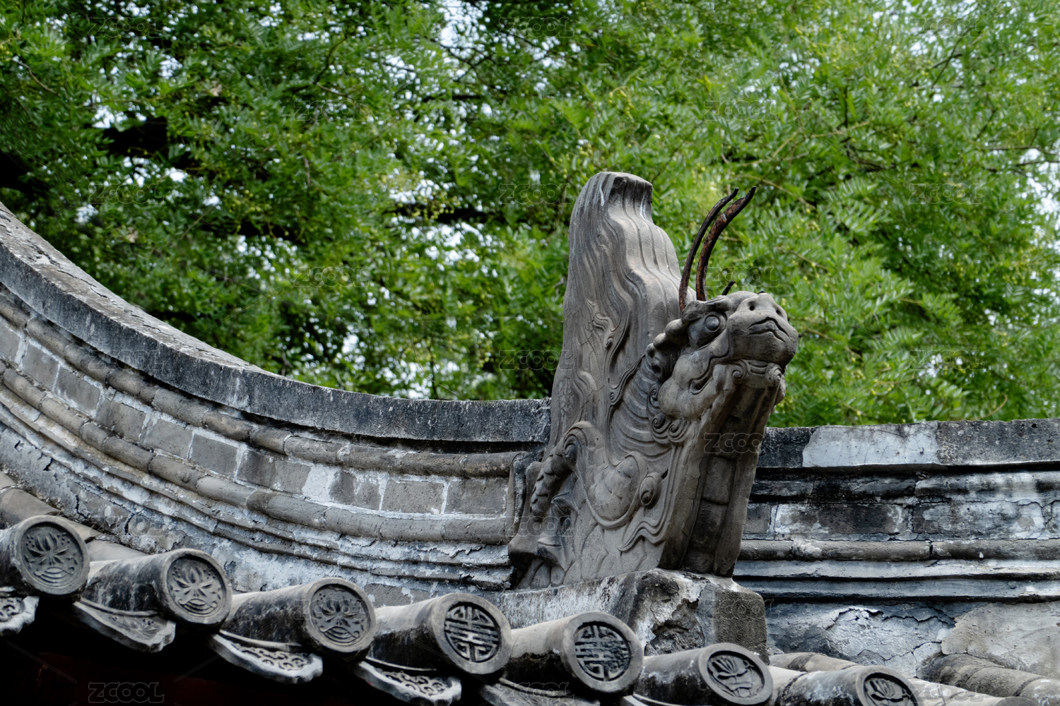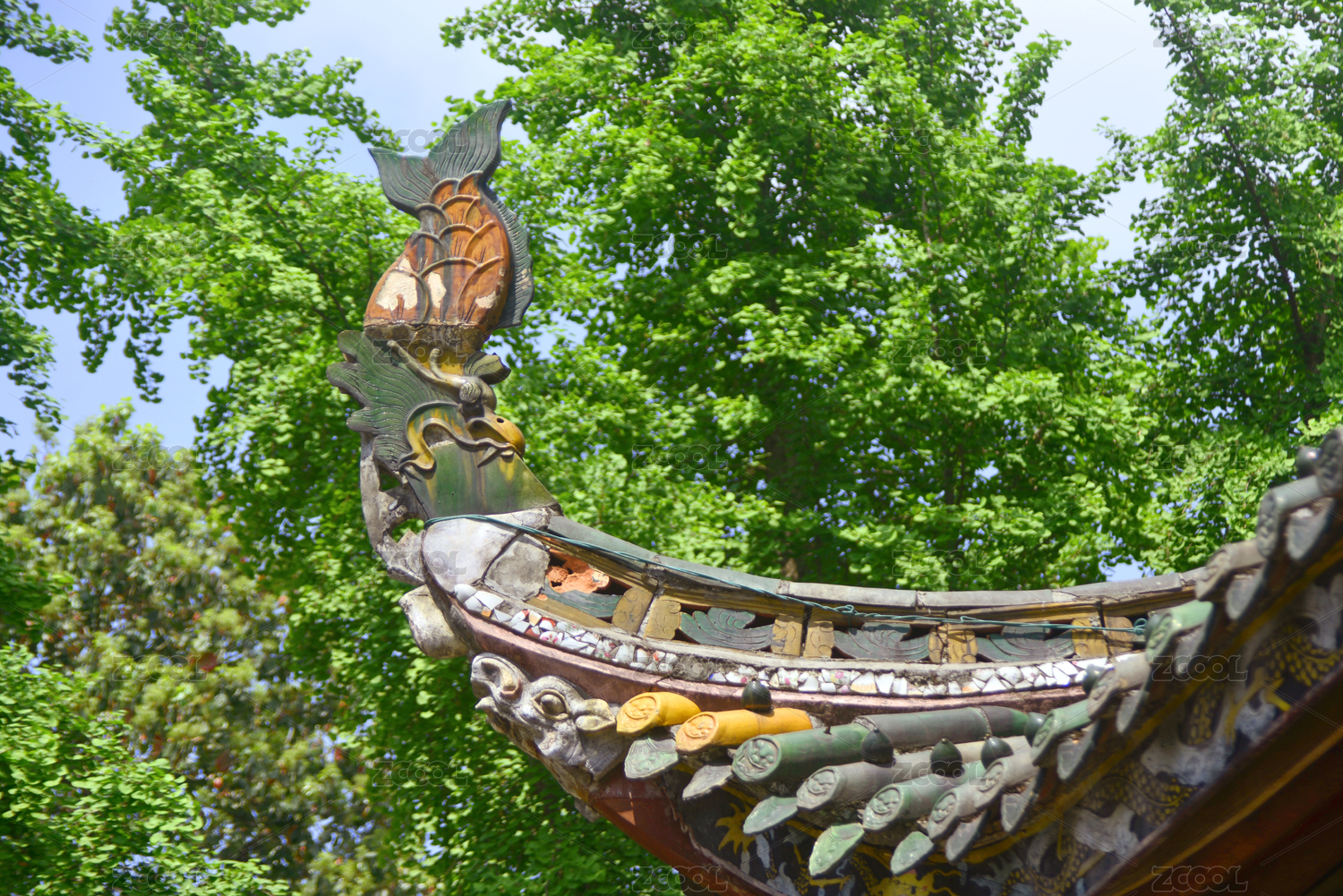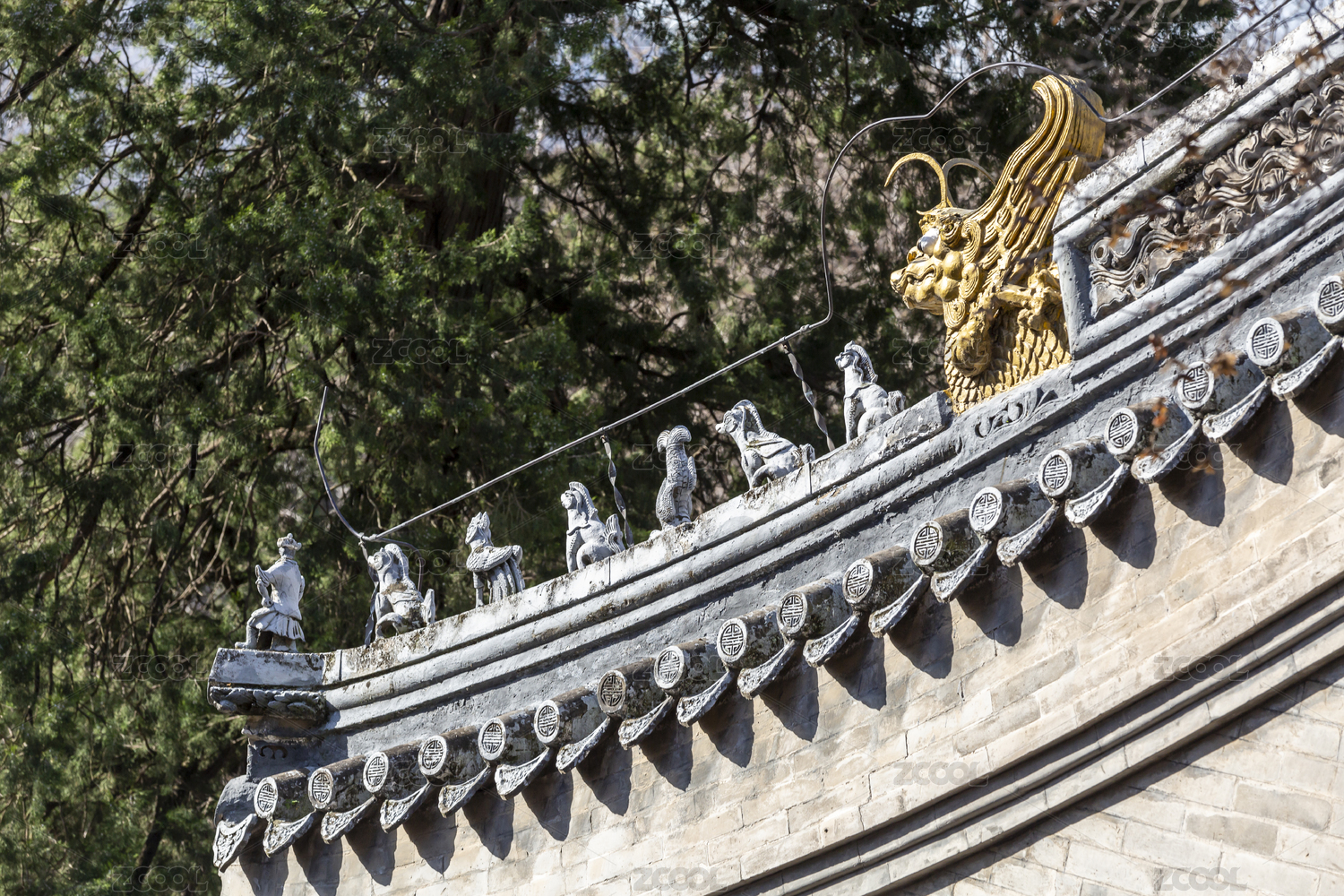 中式古建筑屋頂上的龍鳳脊獸造型