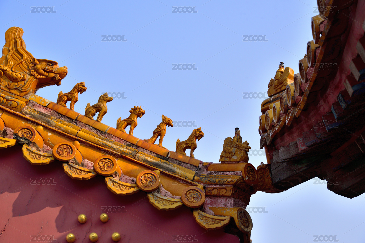 紫禁城故宮紅墻黃瓦脊獸鴟吻
