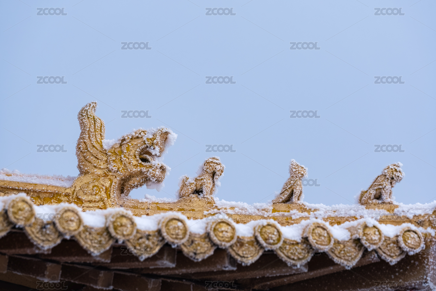雪中古建筑屋檐脊獸