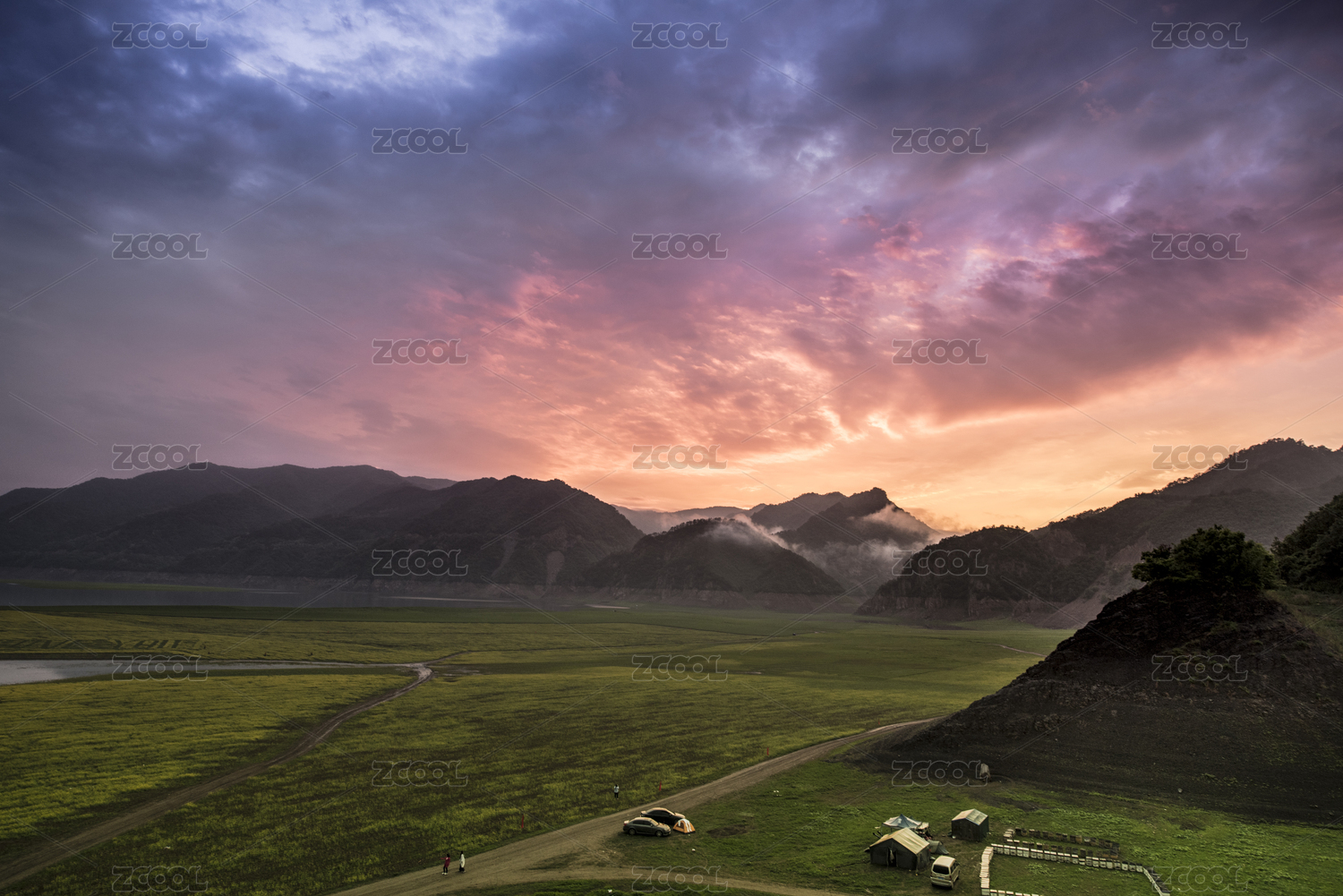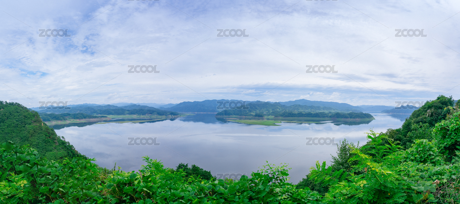 遼寧丹東寬甸綠江村高山水庫全景風光