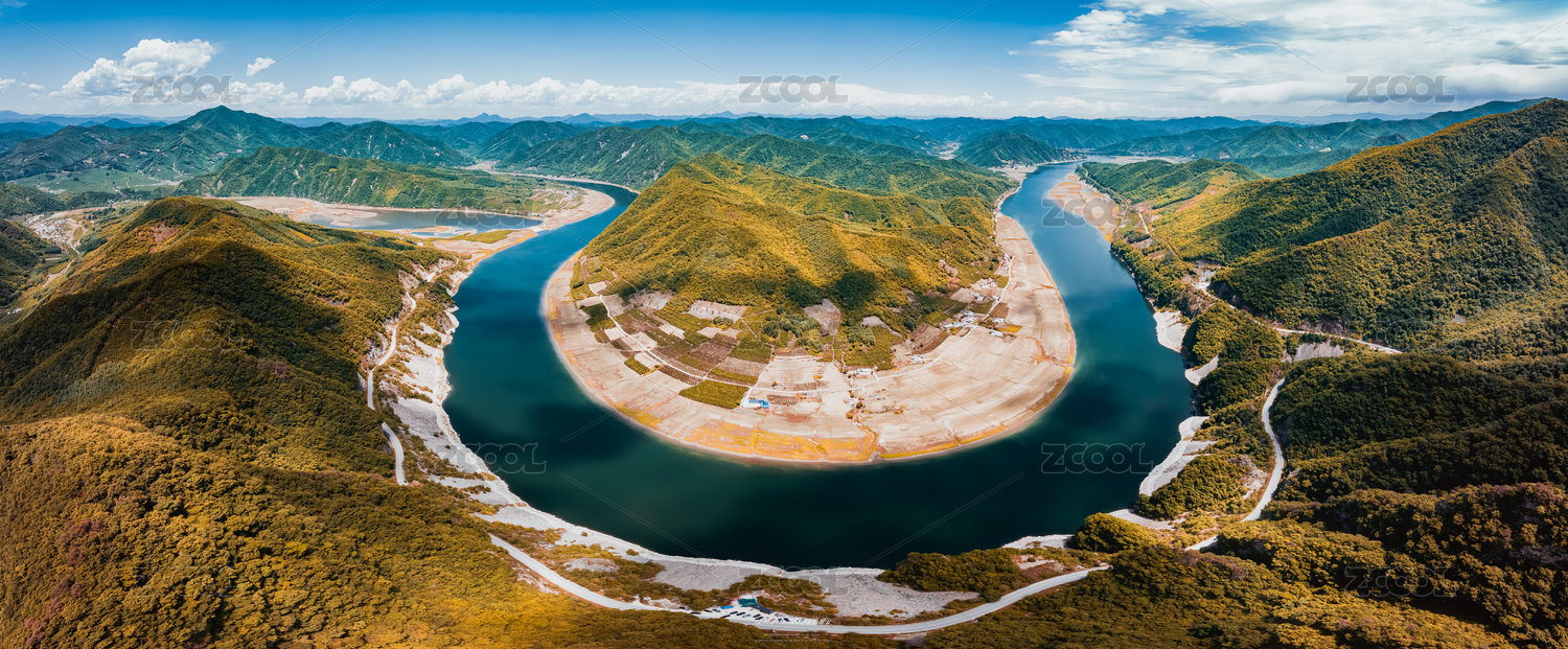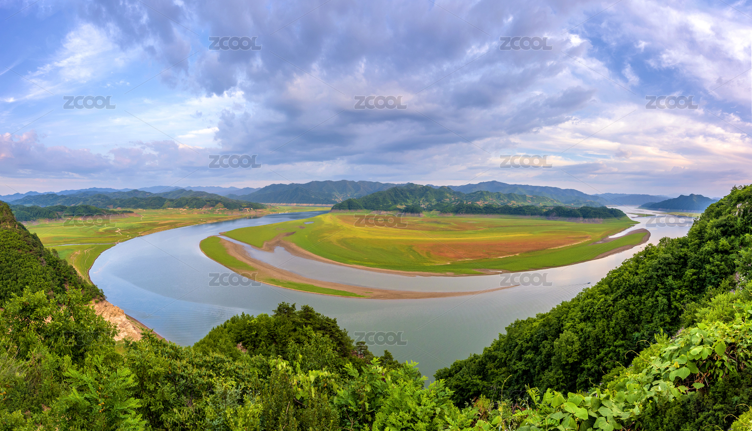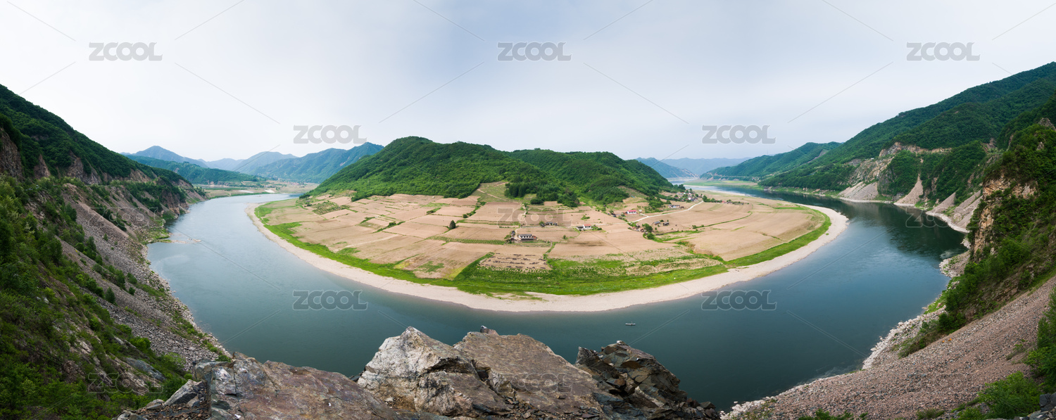 中國遼寧丹東鴨綠江綠江村大拐彎風光