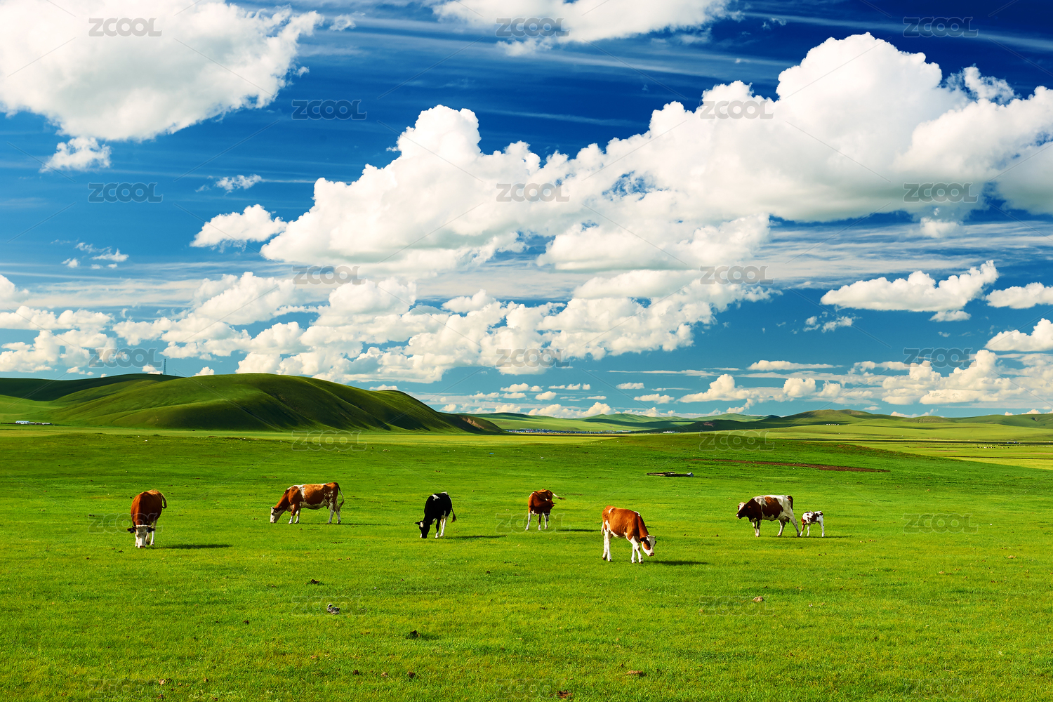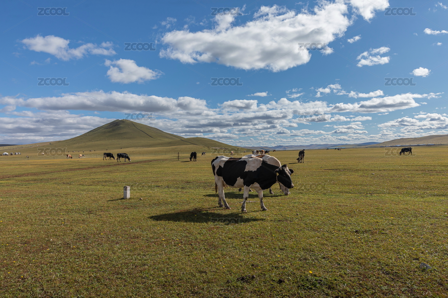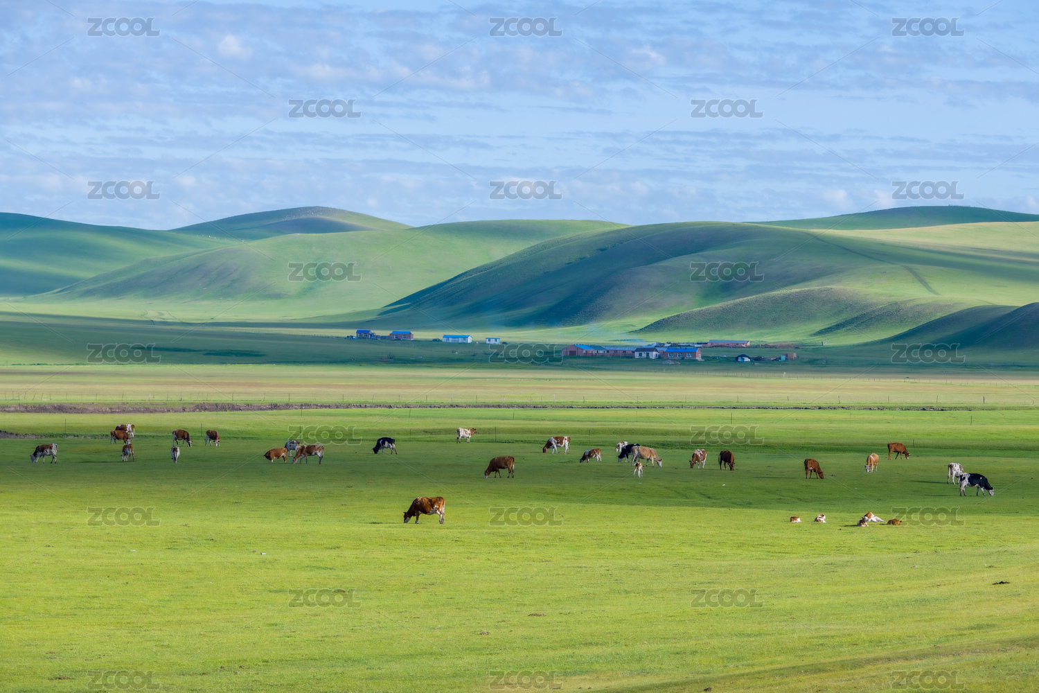 中國(guó)內(nèi)蒙古夏季呼倫貝爾大草原牛群