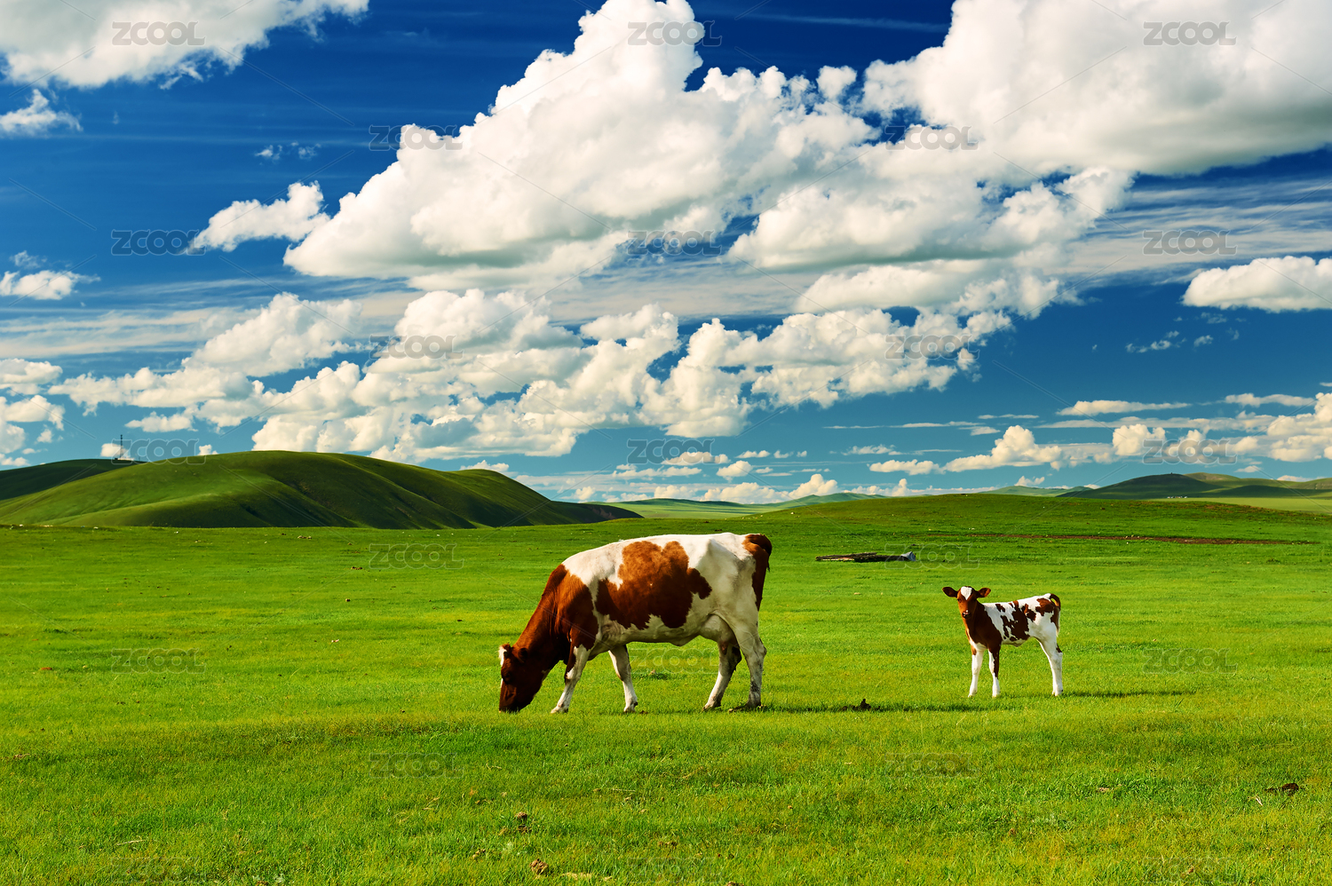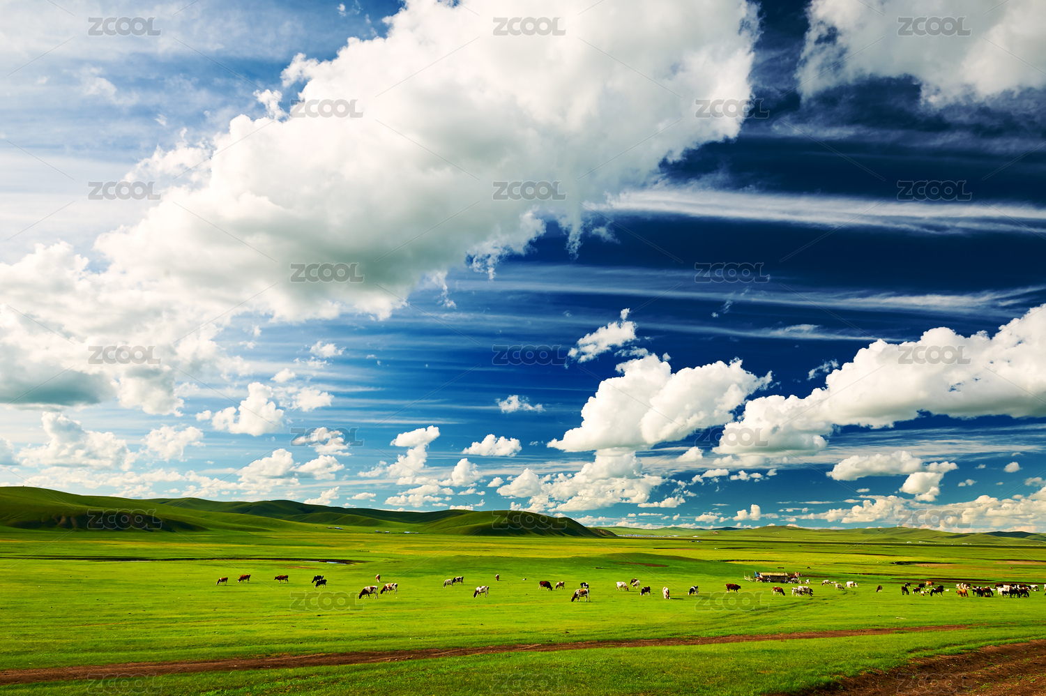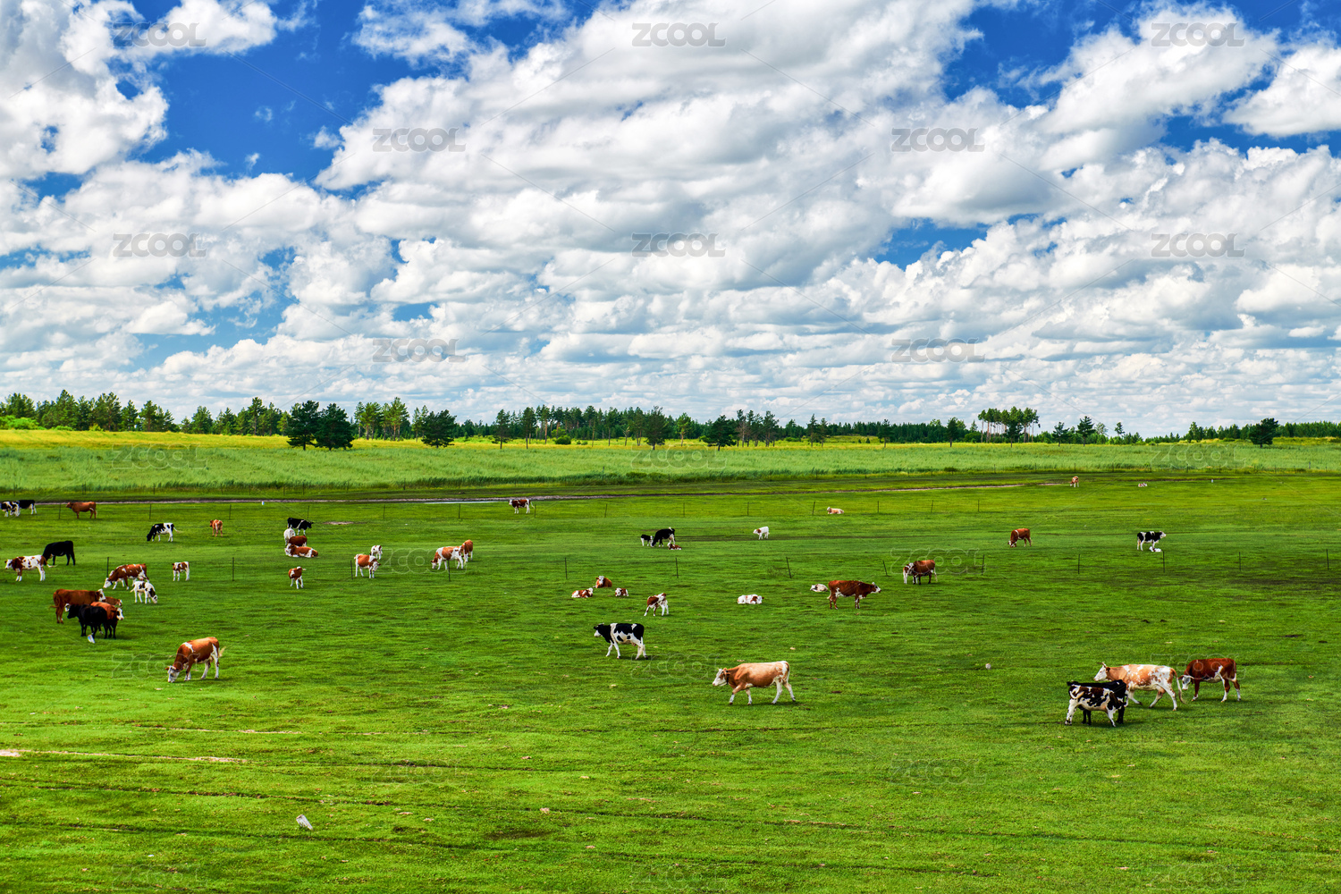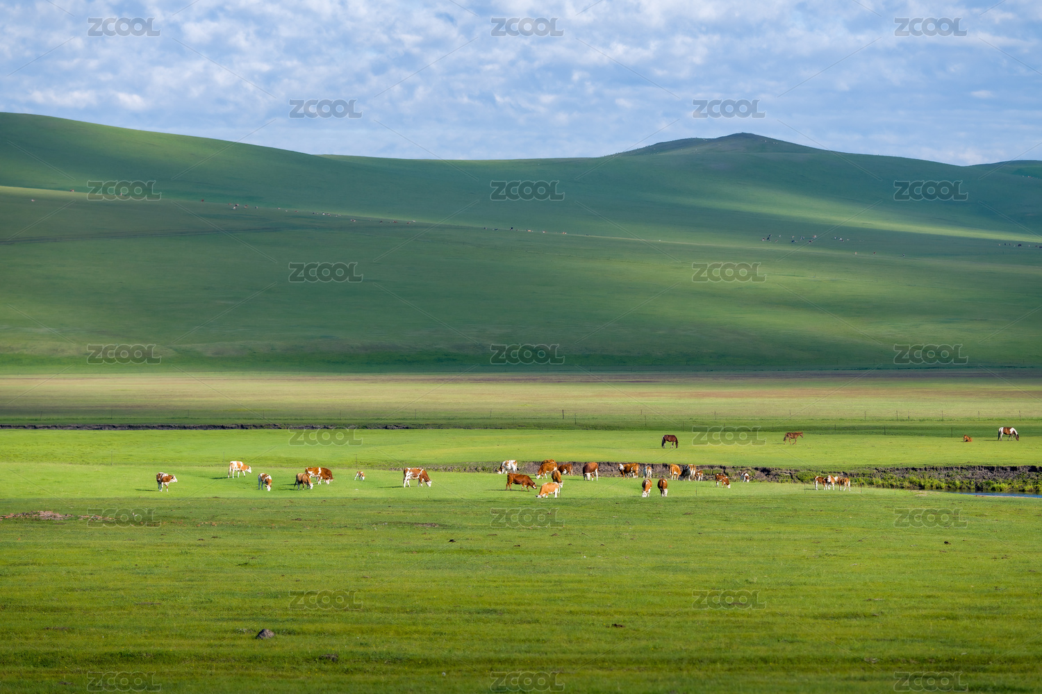 中國(guó)內(nèi)蒙古夏季呼倫貝爾大草原牛群
