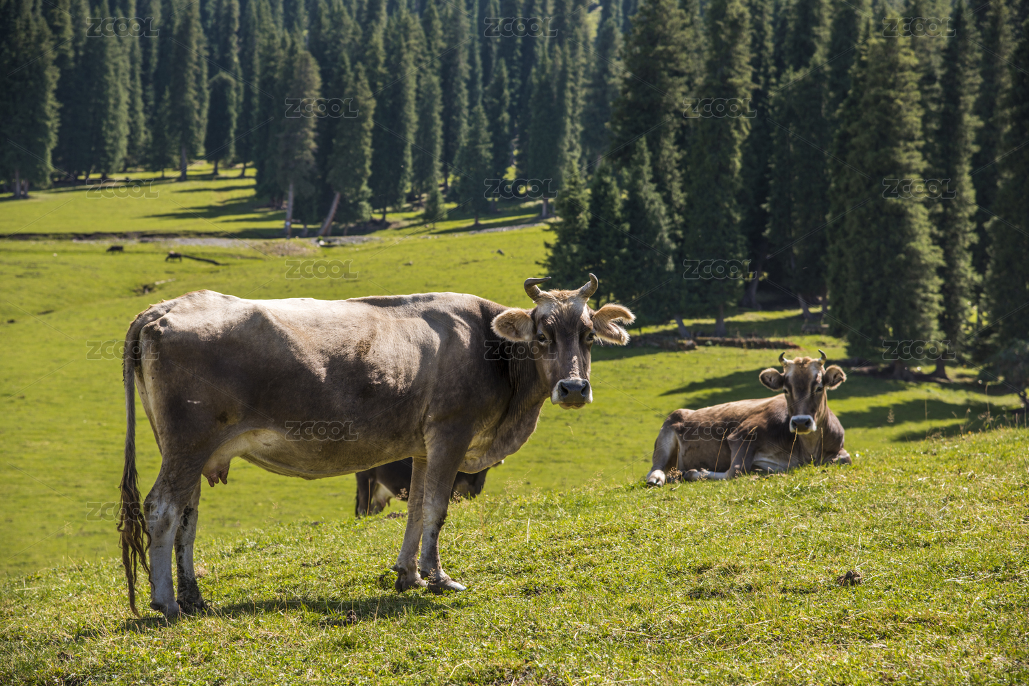 朝陽(yáng)下的高山牛群