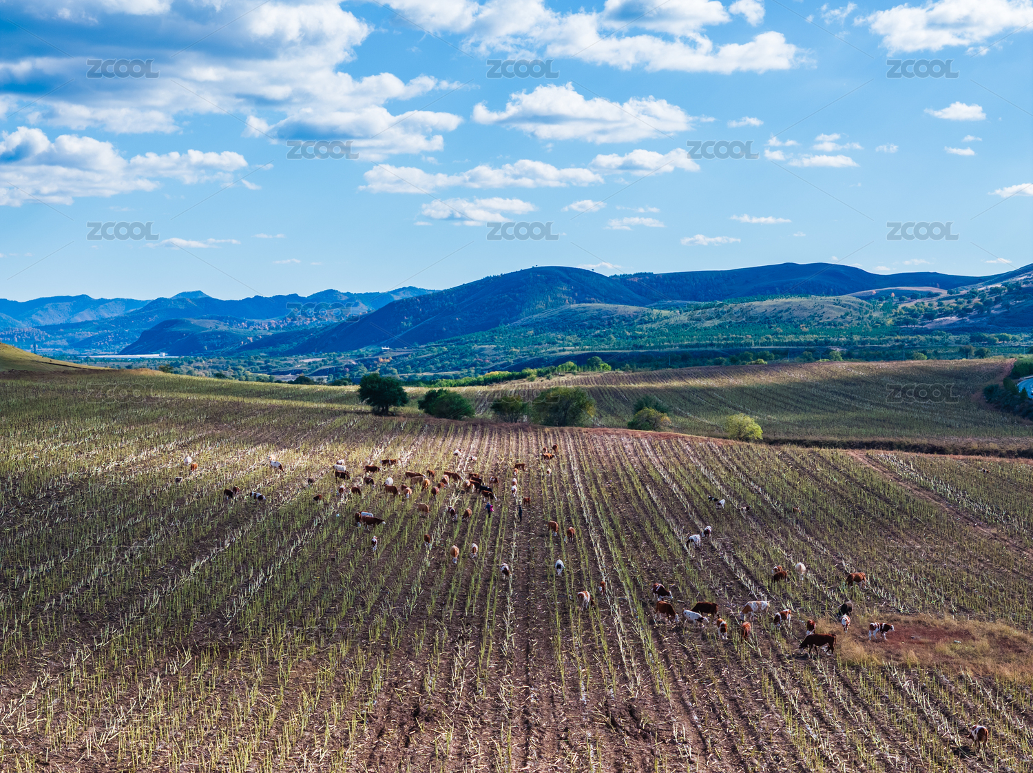 中國(guó)河北承德農(nóng)村田野里的牛群