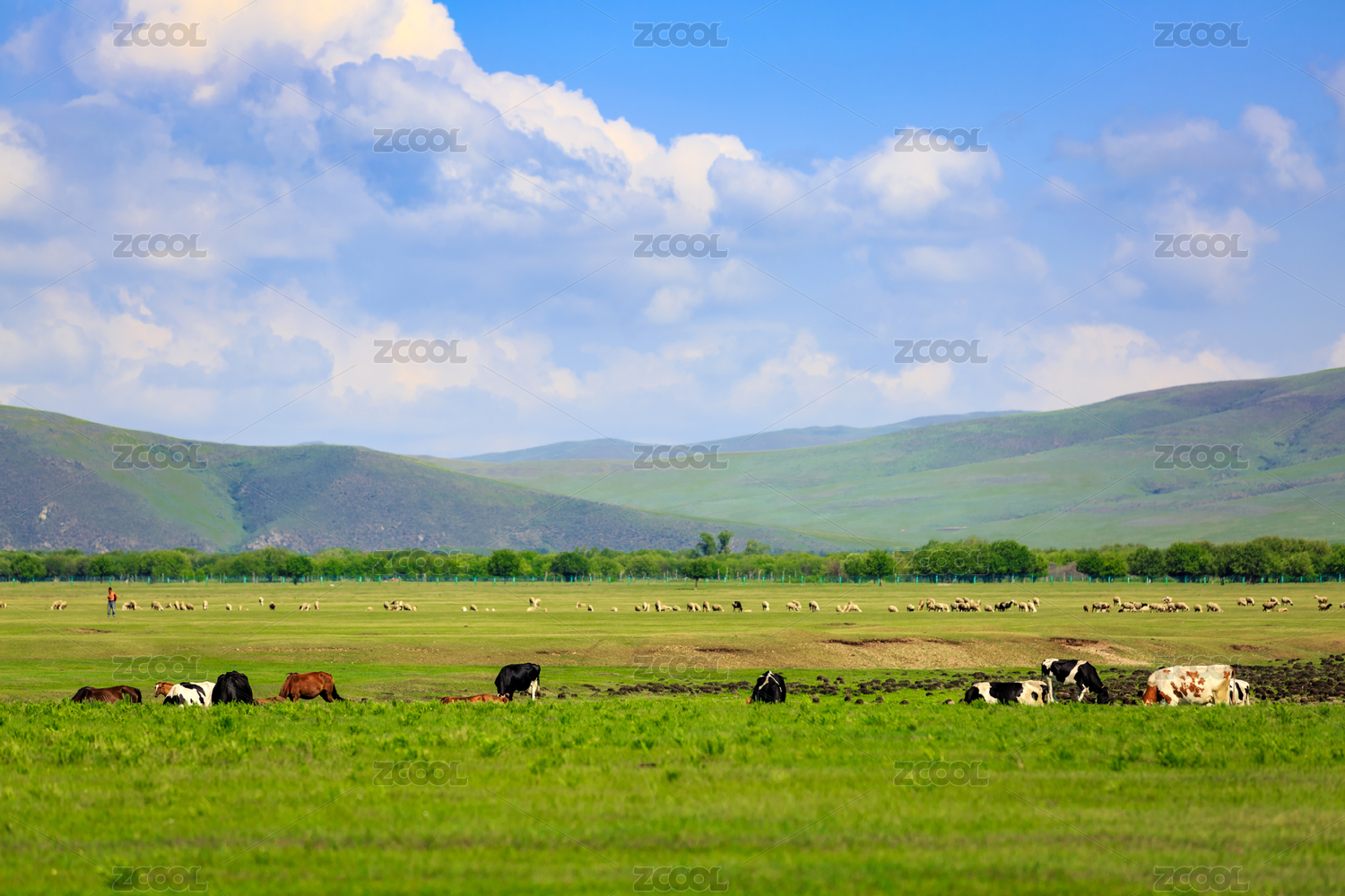 內(nèi)蒙古呼倫貝爾阿爾山草原上的牛群羊群