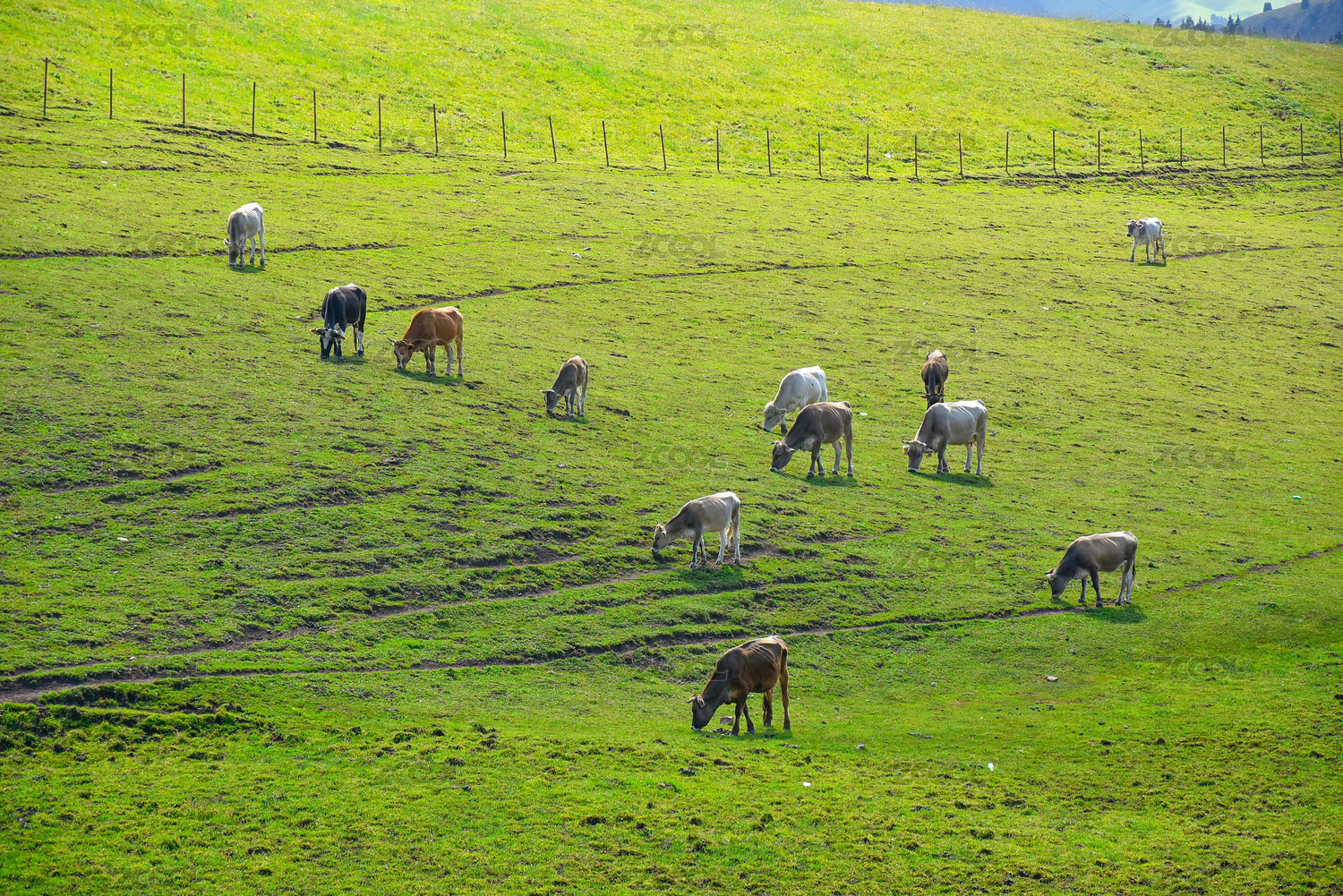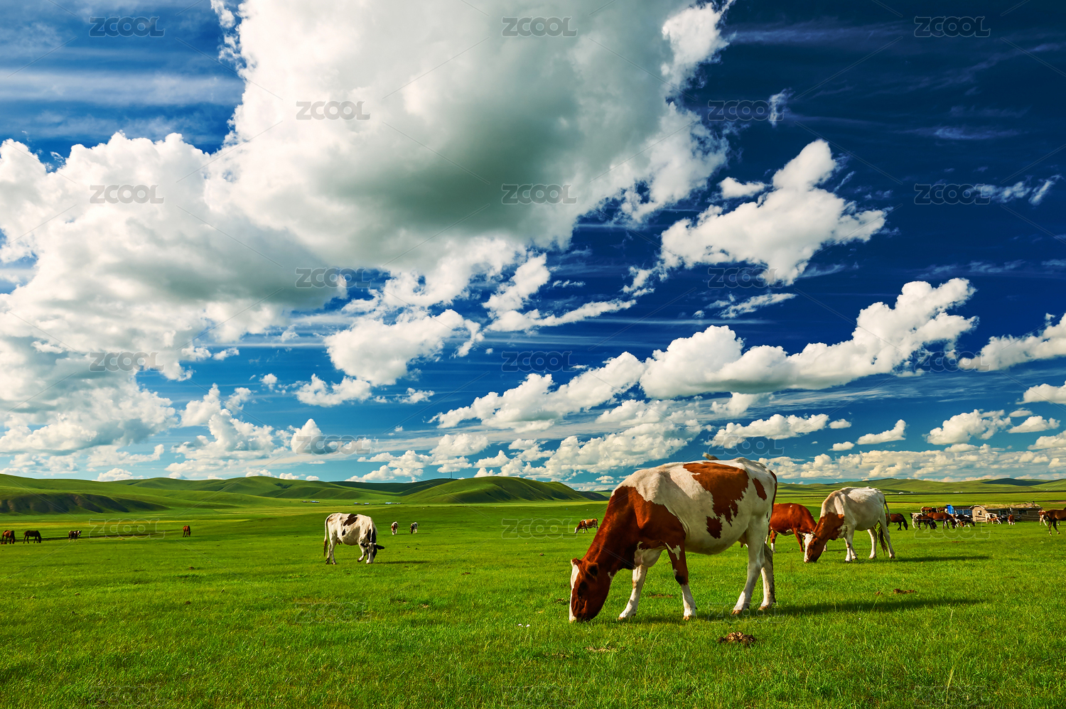 草原上吃草的牛群