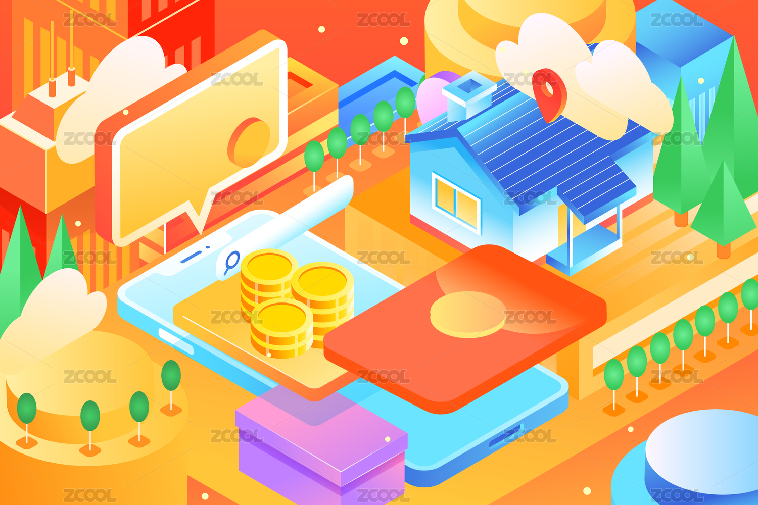 2.5D等距互聯(lián)網(wǎng)金融概念矢量插畫