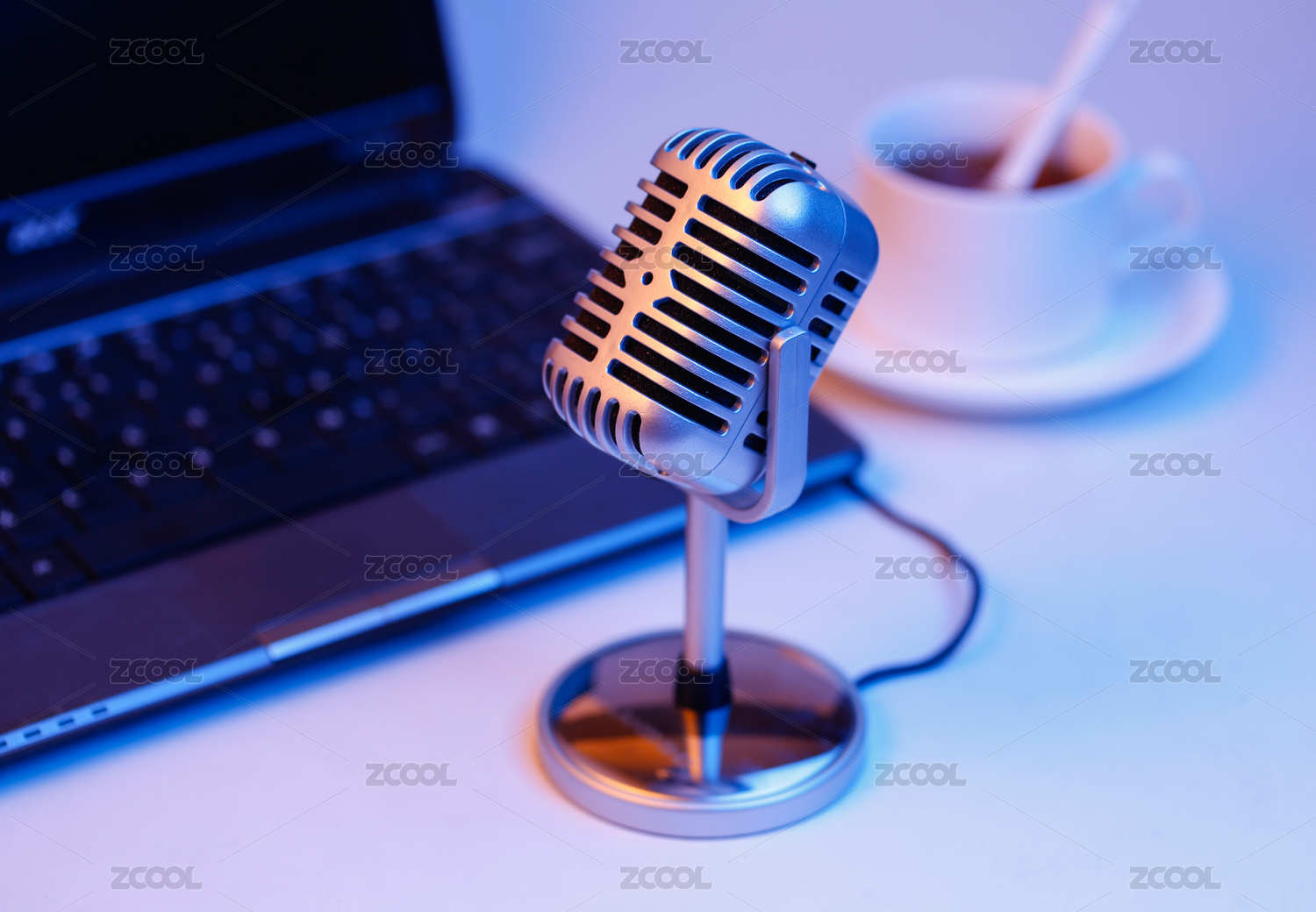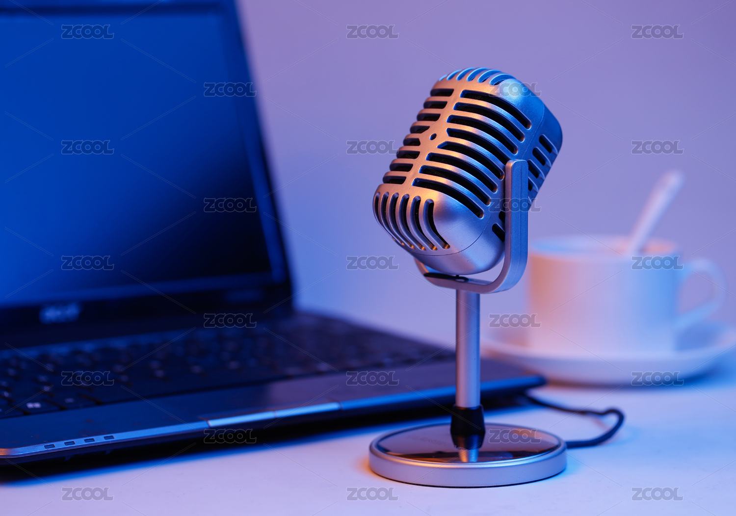 復(fù)古麥克風(fēng)和筆記本電腦,網(wǎng)上直播,在線直播概念