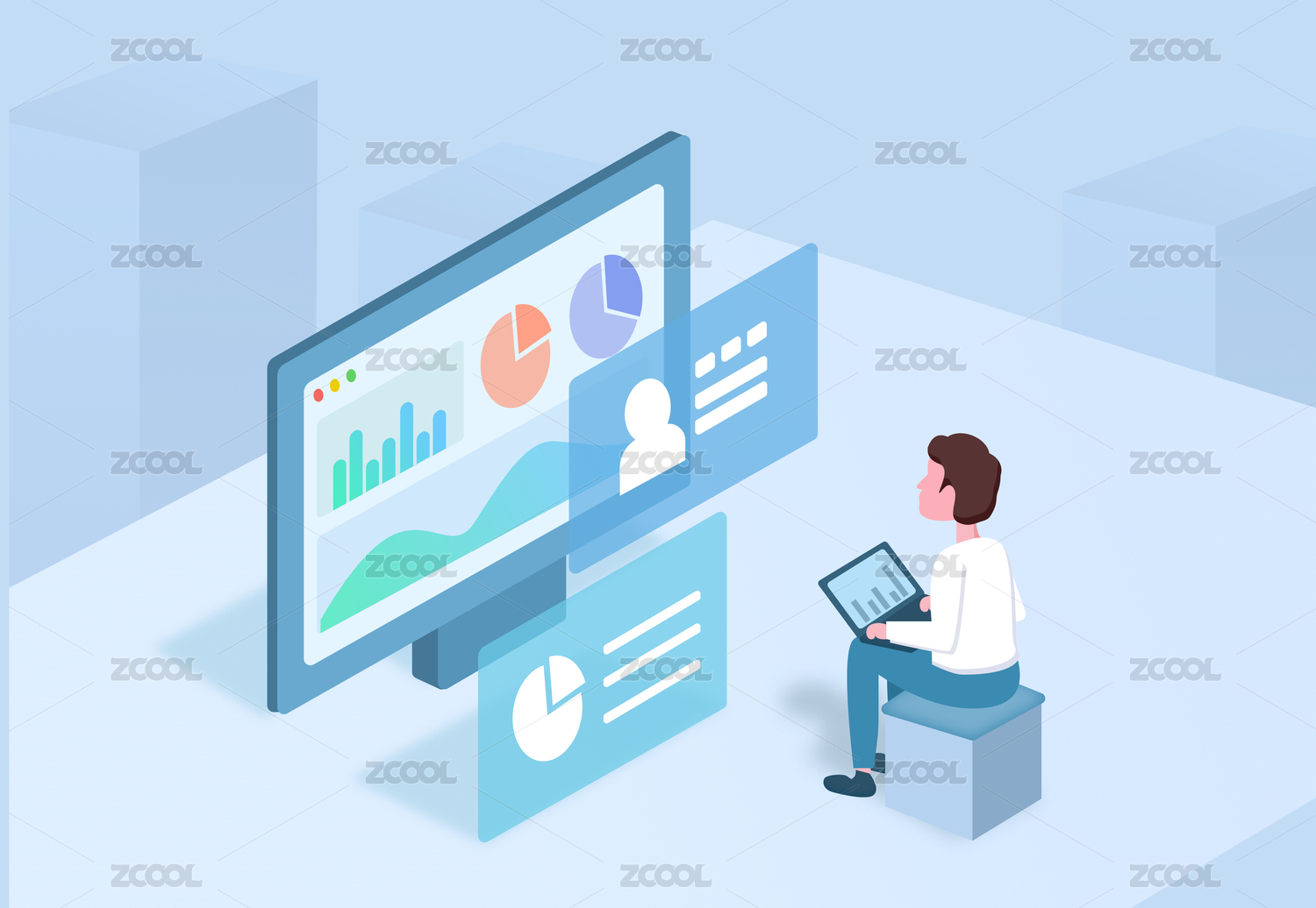 互聯(lián)網(wǎng)醫(yī)療大數(shù)據(jù)AI可視化科技2.5D場景插畫