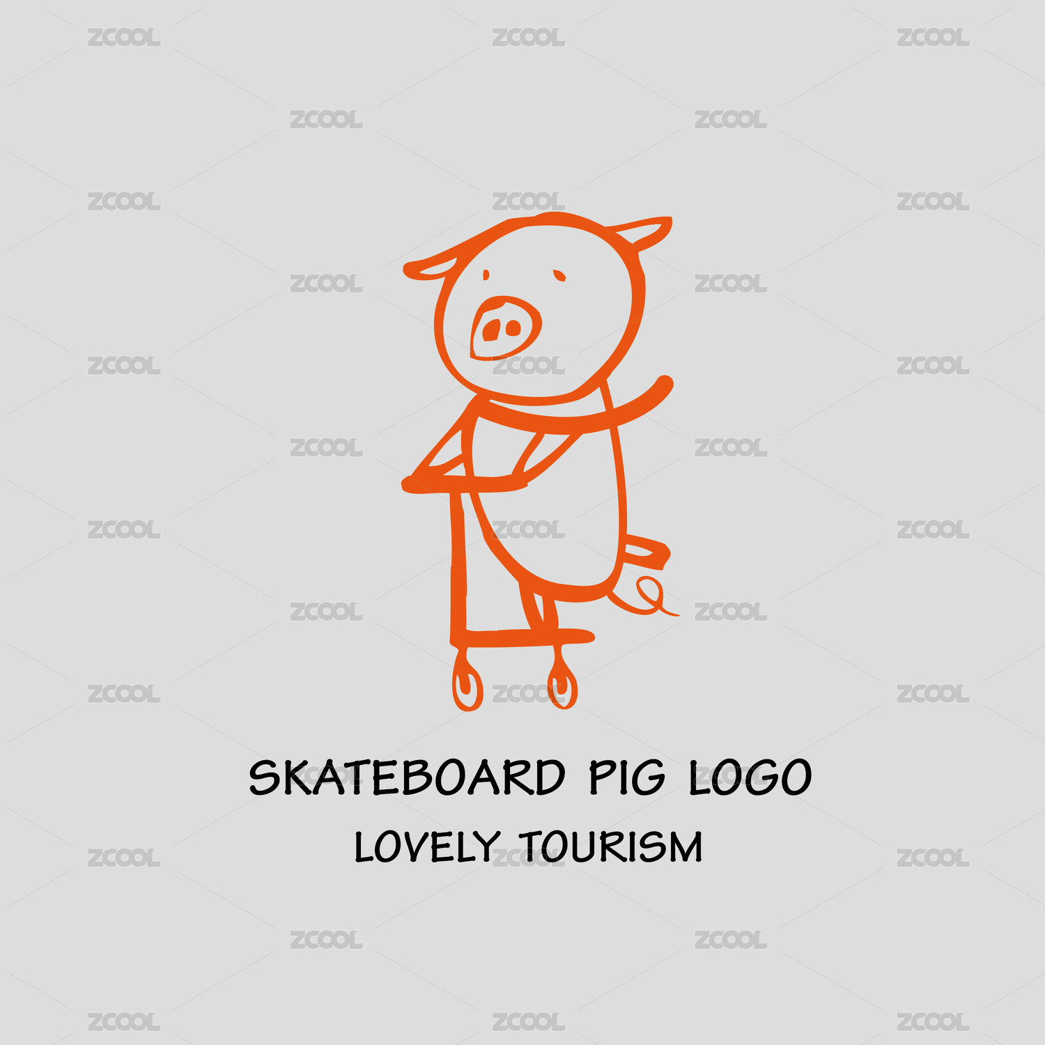 滑板豬卡通吉祥物 標志logo素材