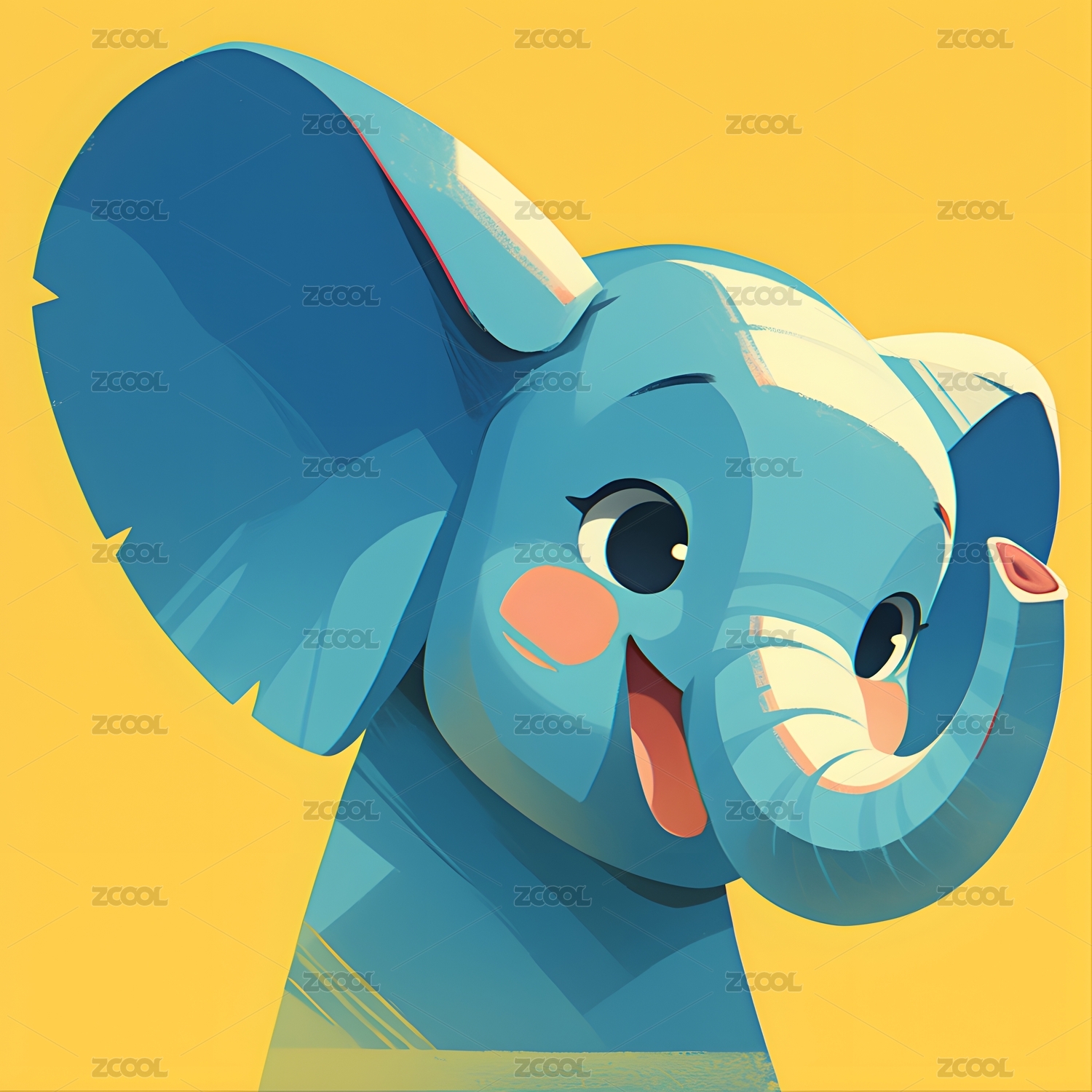 扁平簡筆畫卡通風(fēng)格大象趣味插畫圖案