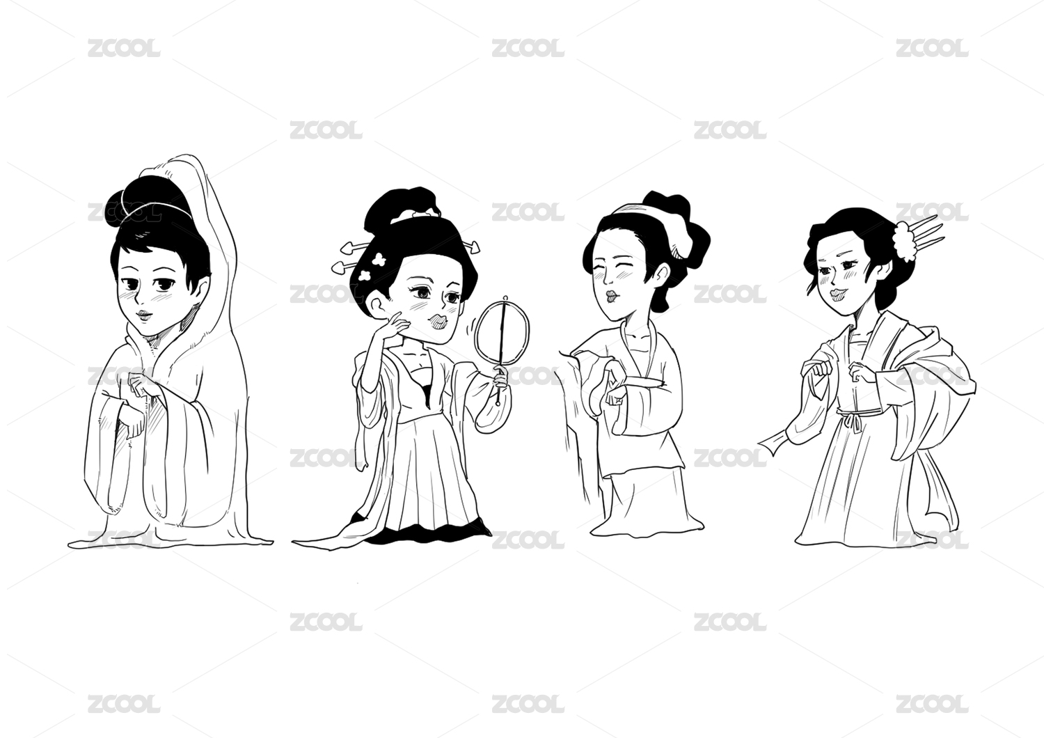 古代四大美女系列插畫