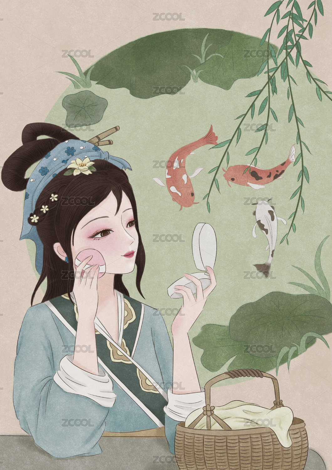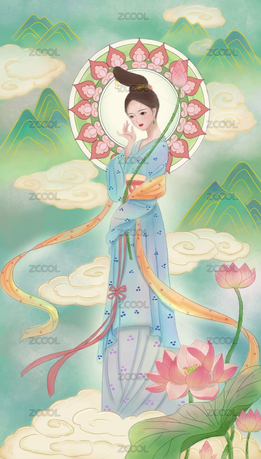 國風人物插畫:蓮花女神-西施