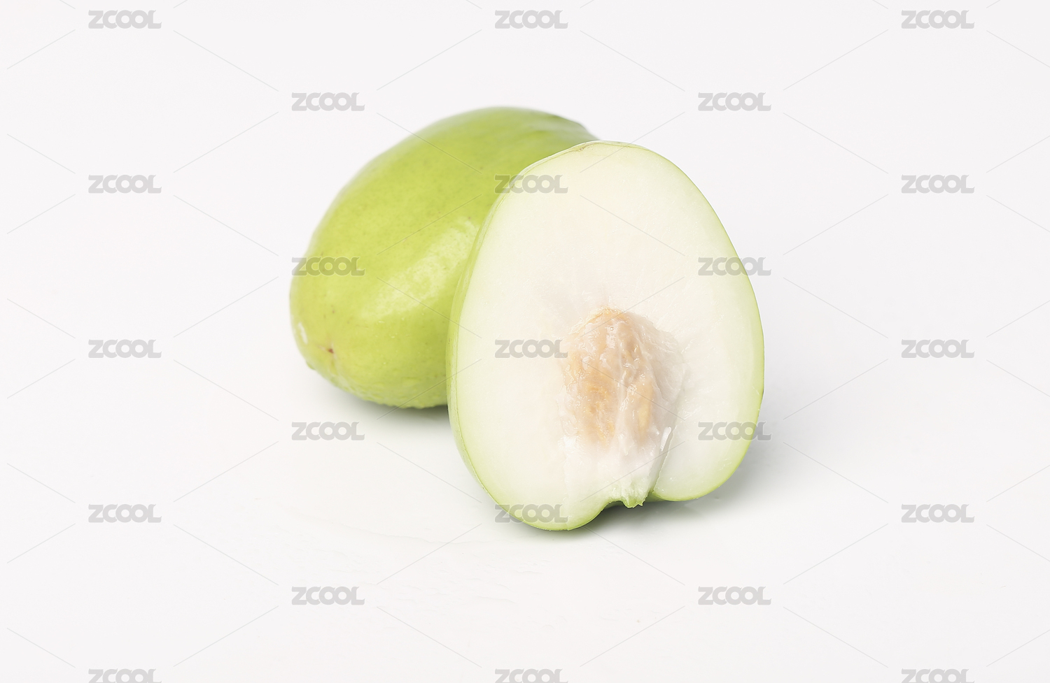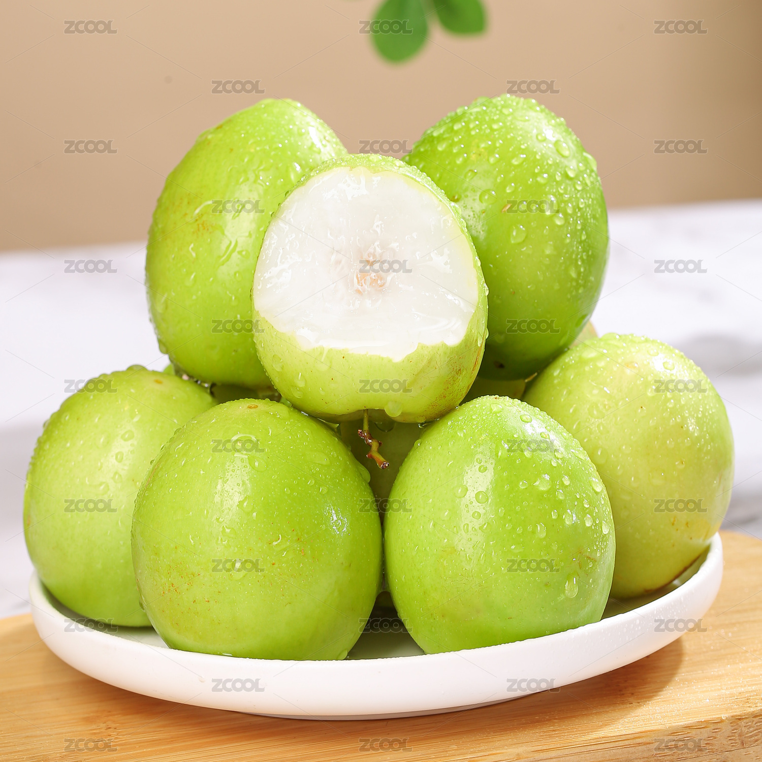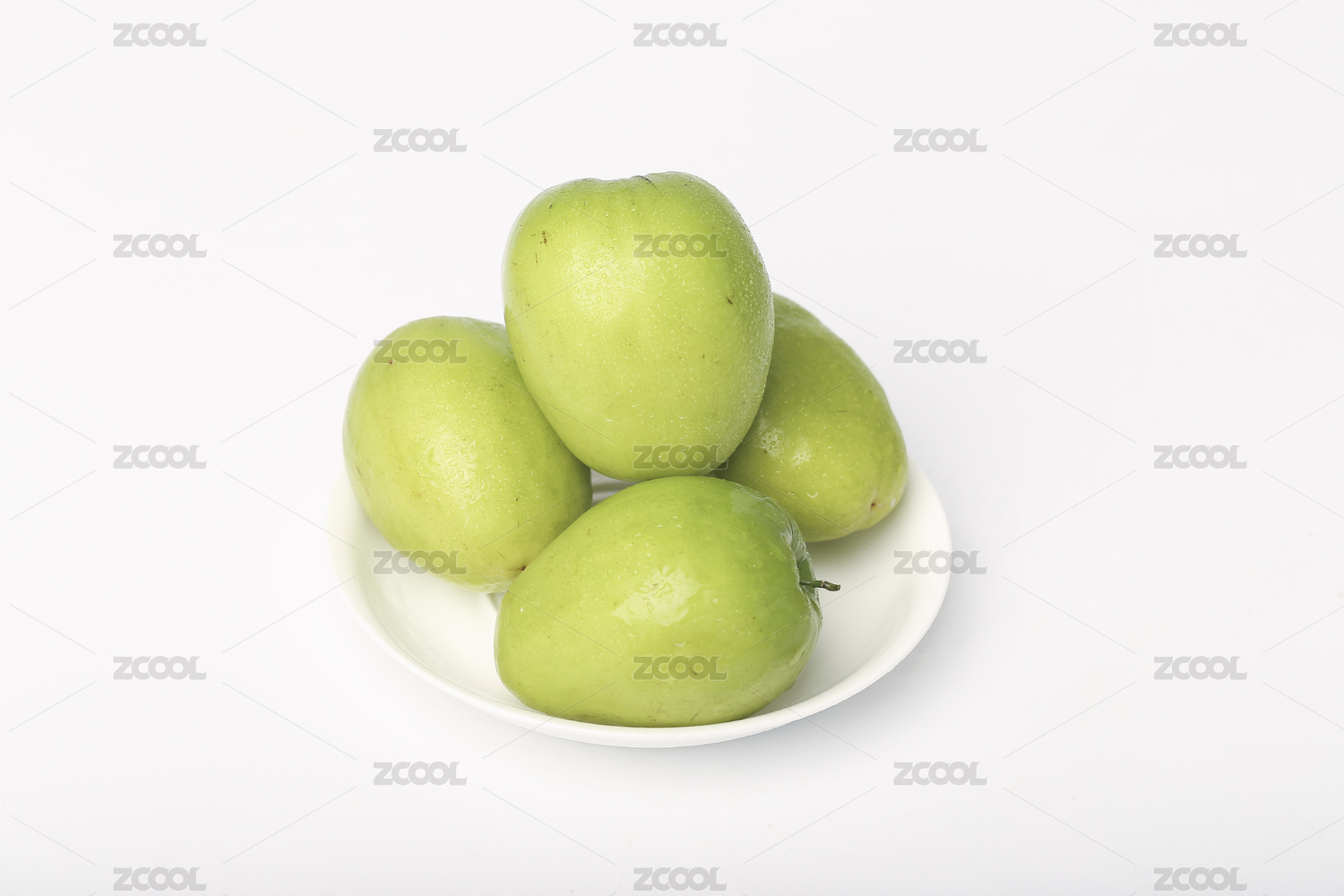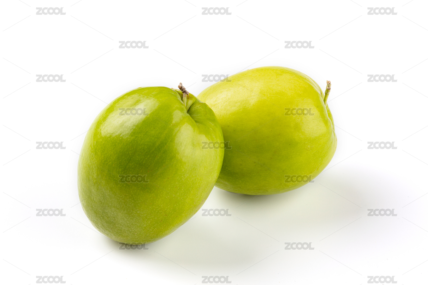 白底上放著兩個完整牛奶大青棗和半邊牛奶棗