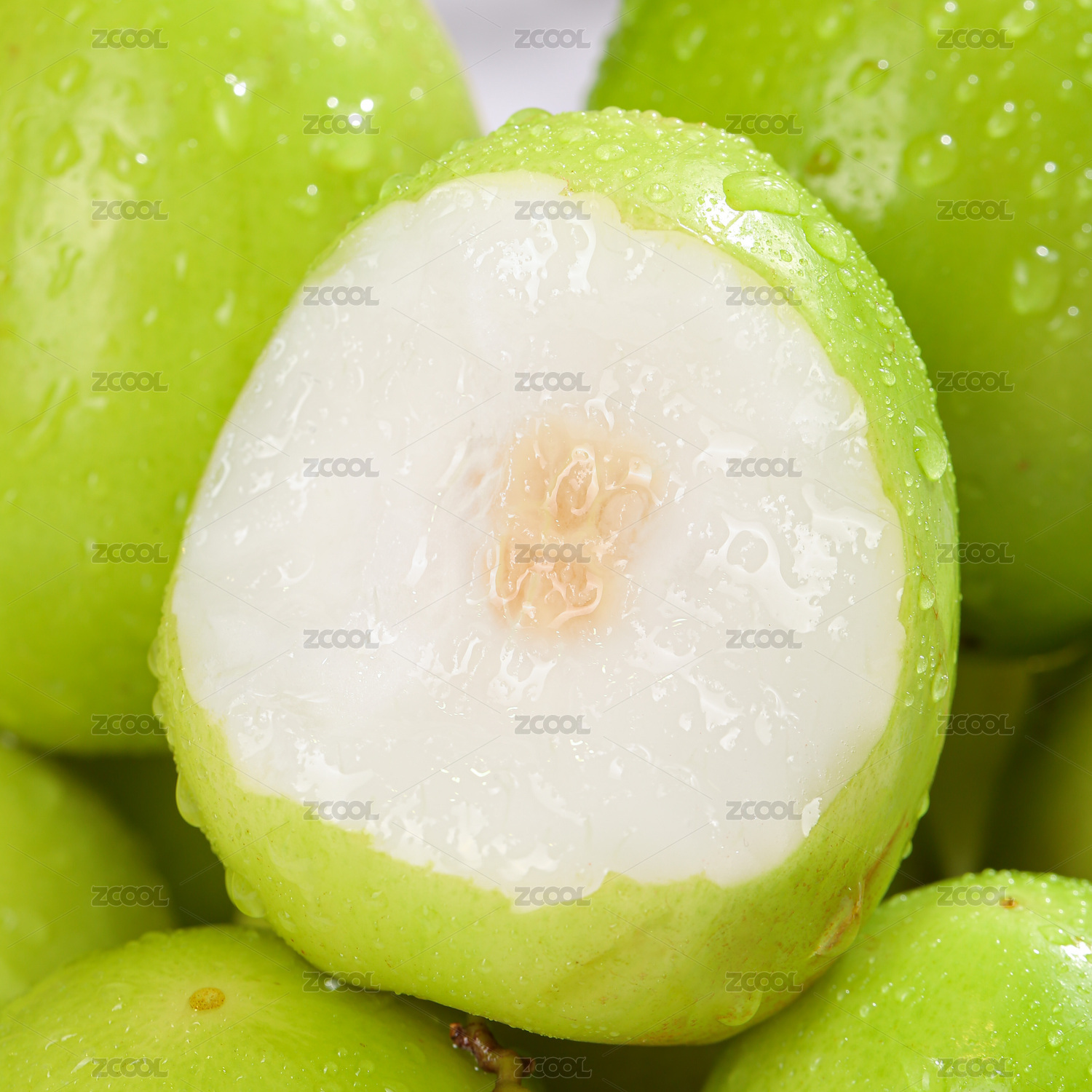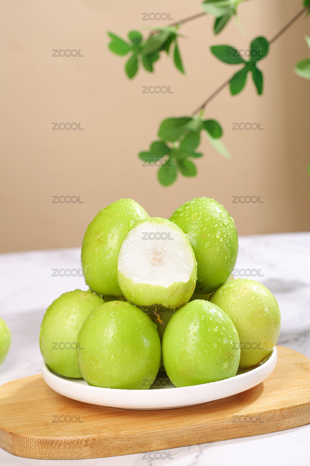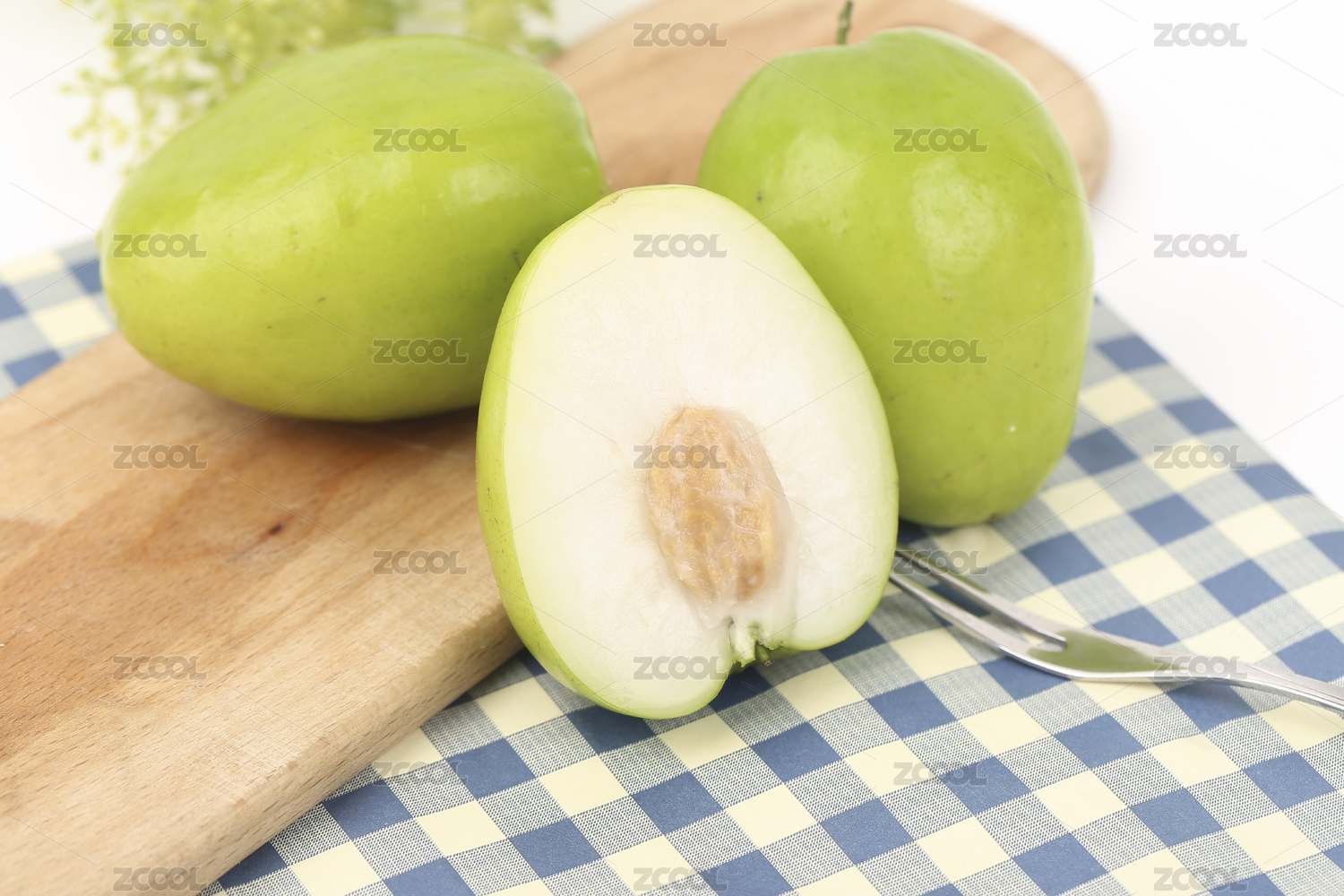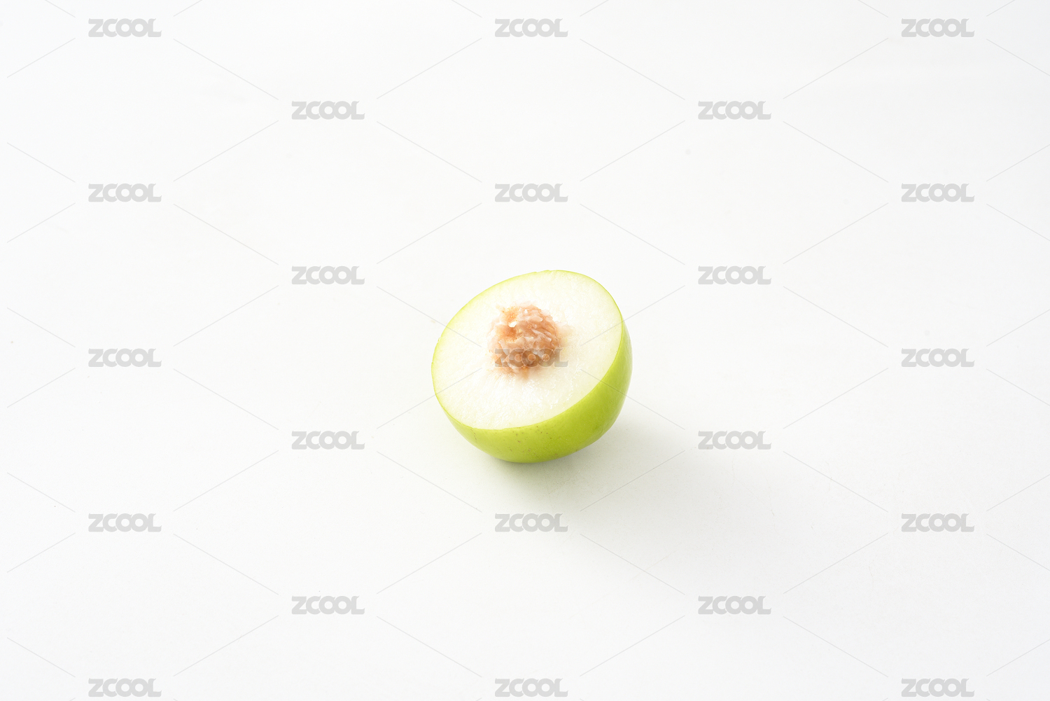 白底上放著兩個完整牛奶大青棗和半邊牛奶棗