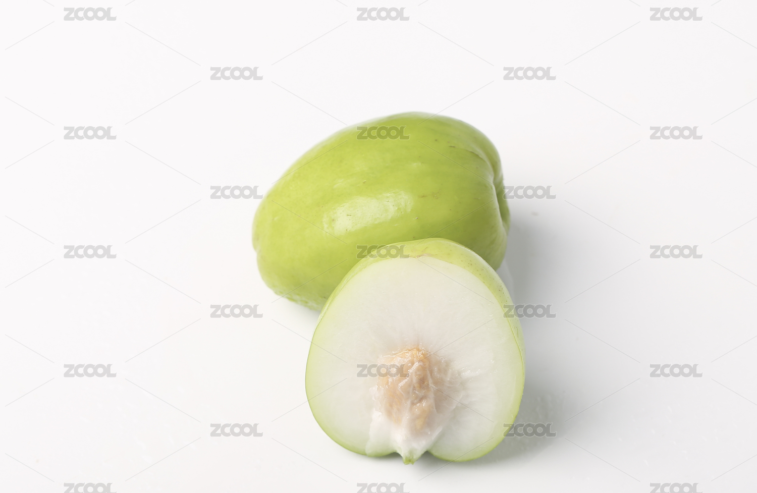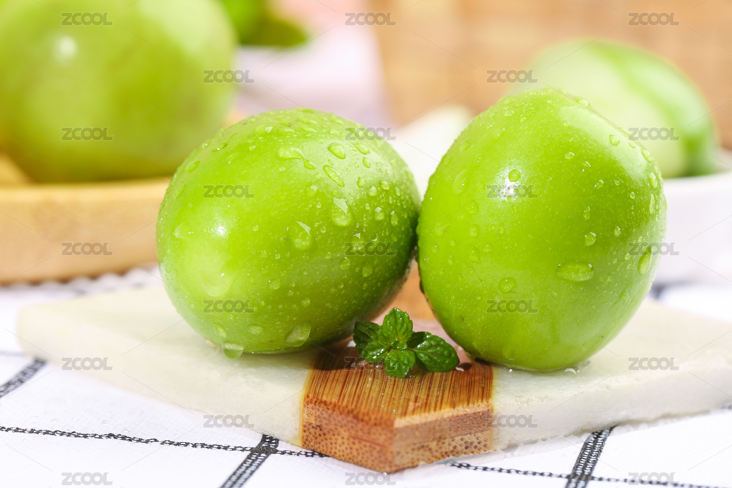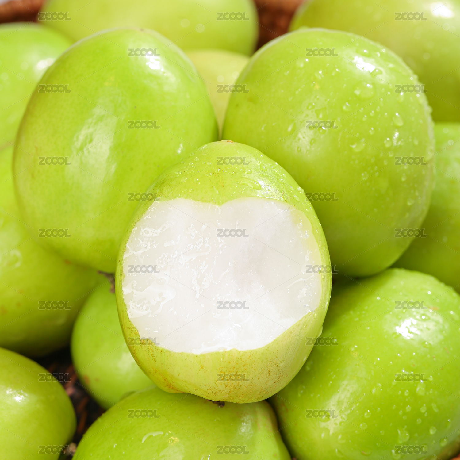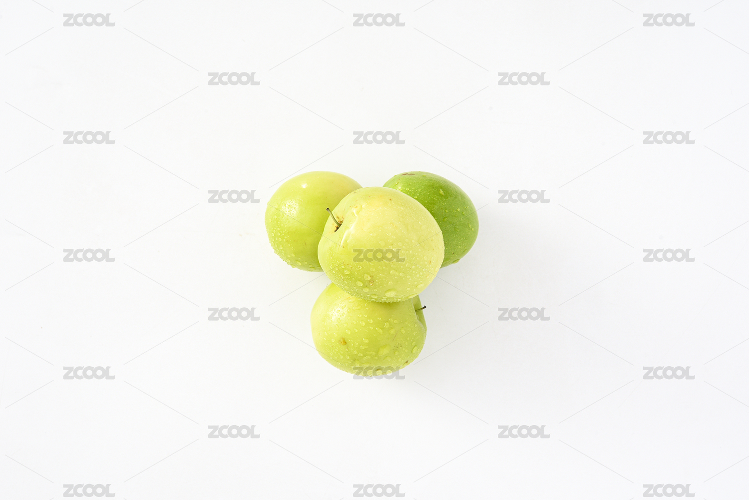 白底上放著兩個完整牛奶大青棗和半邊牛奶棗