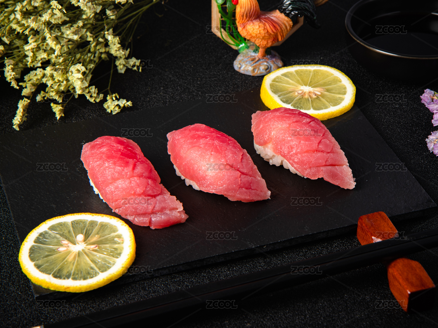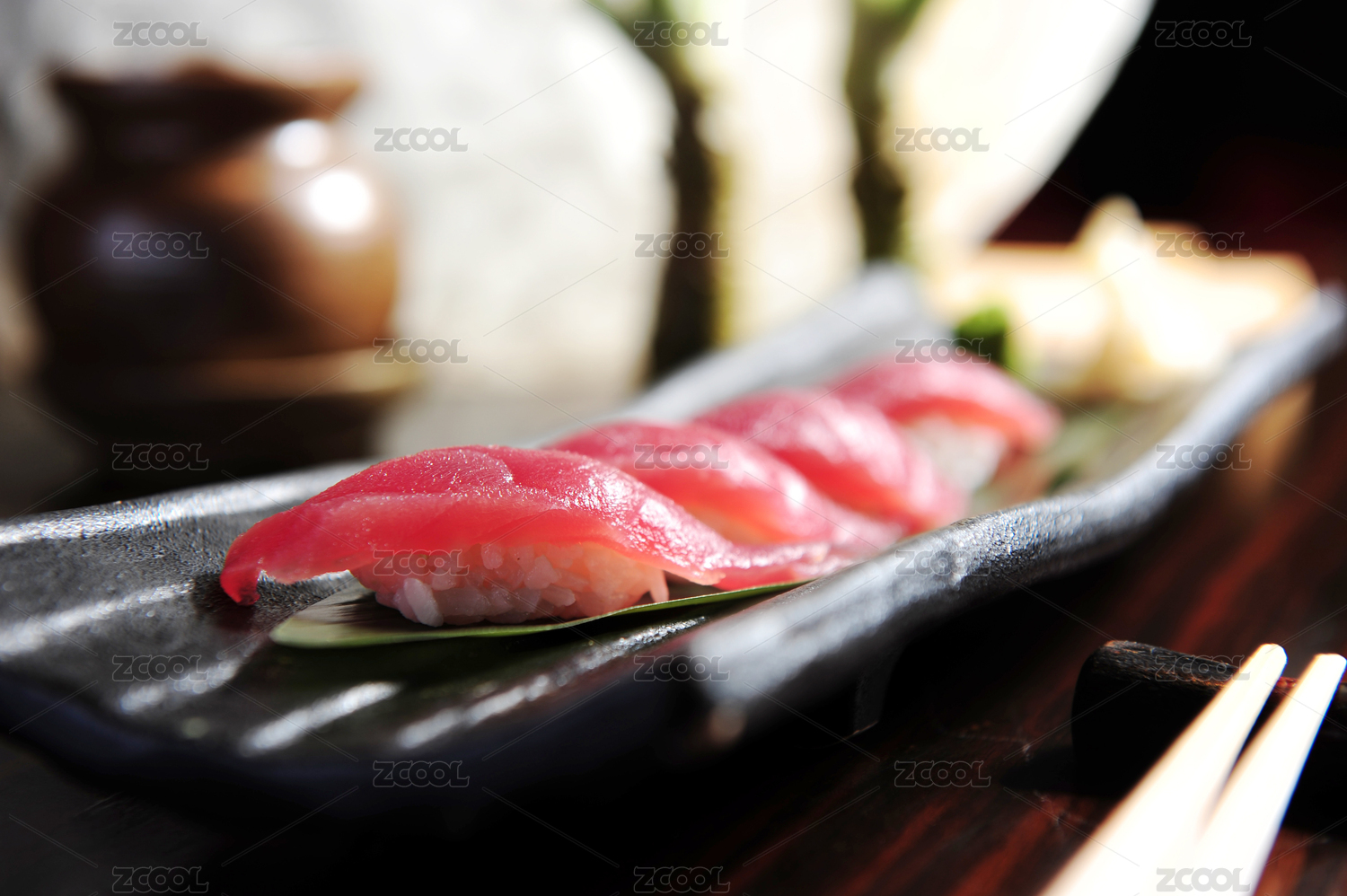 黑色方盤里的日本料理金槍魚壽司