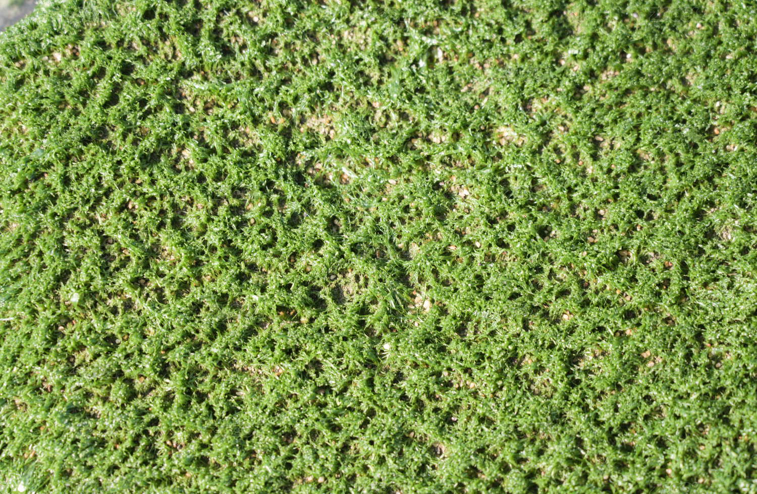夏天生長(zhǎng)在潮濕青石板上的翠綠色苔蘚