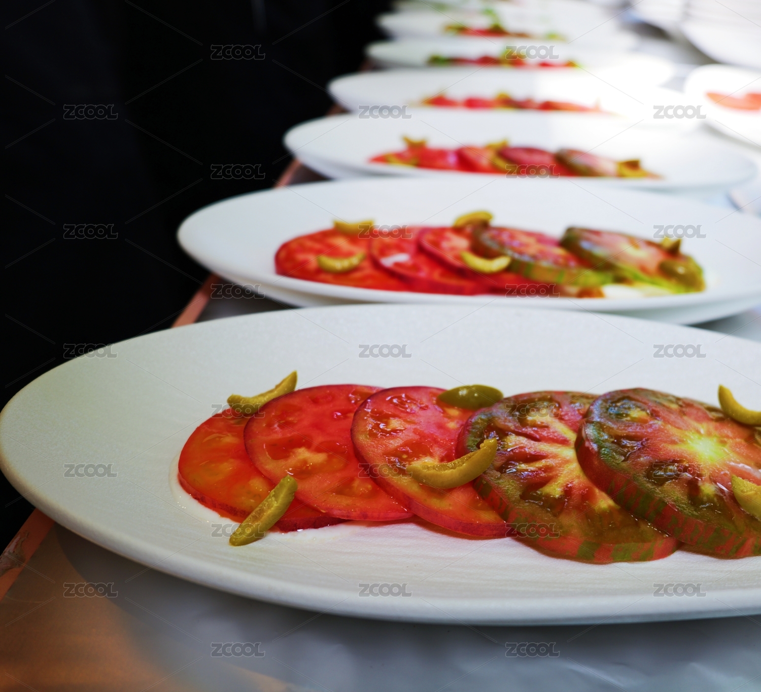 服務(wù)員正為開心的客人上菜的泰式綠植室外餐