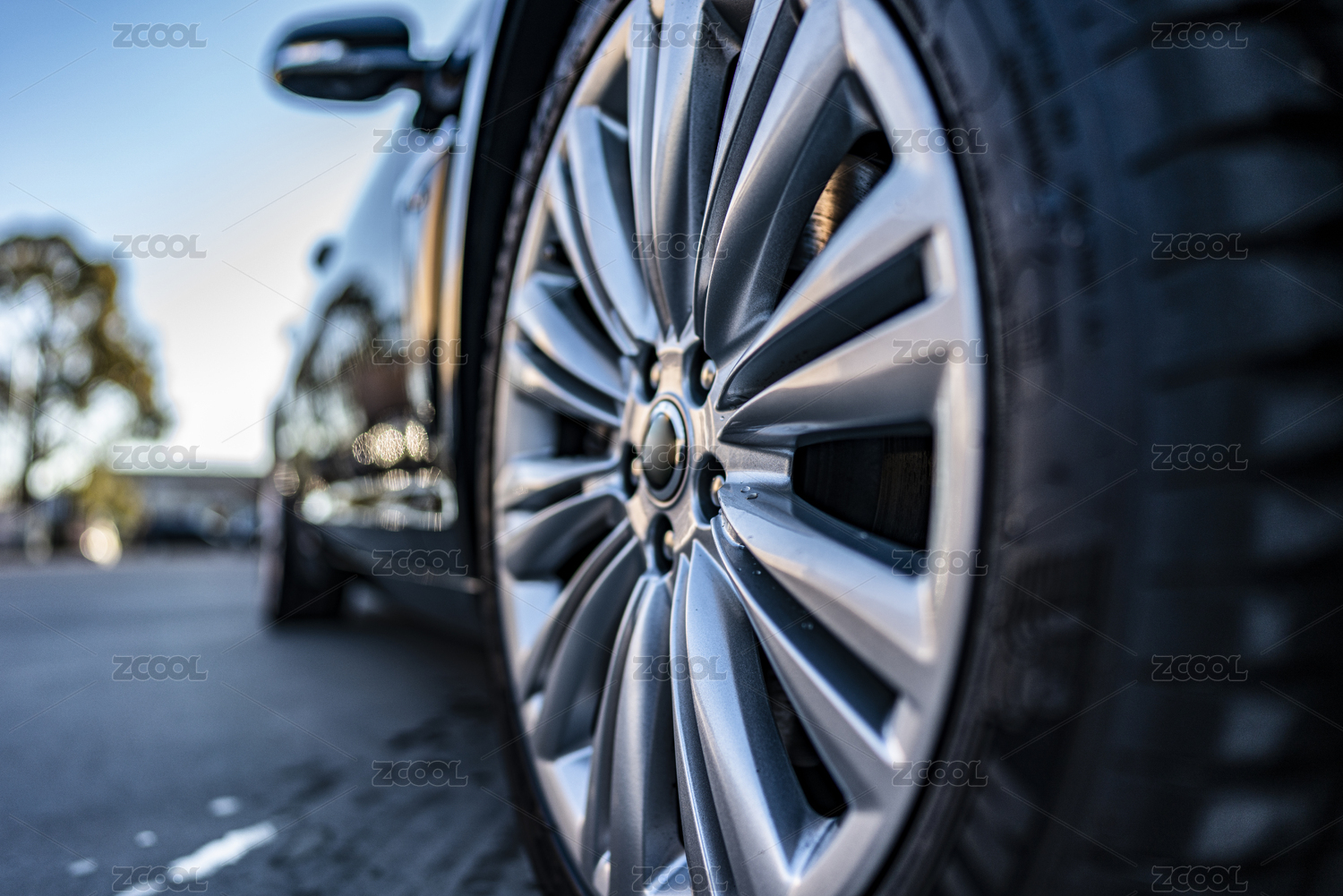 嶄新的黑色轎車汽車的輪胎