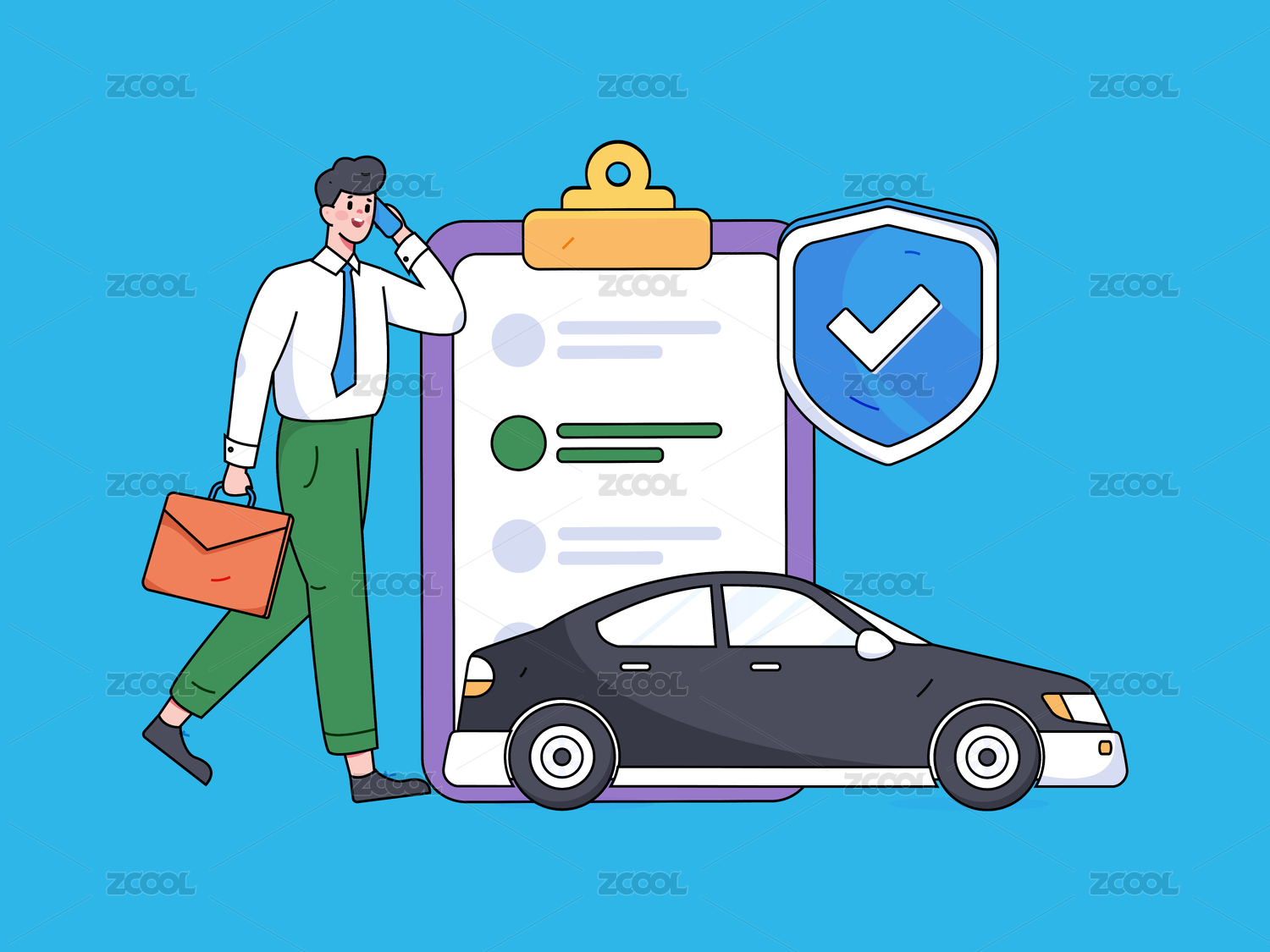 為汽車購(gòu)買保險(xiǎn)扁平人物矢量概念運(yùn)營(yíng)插畫