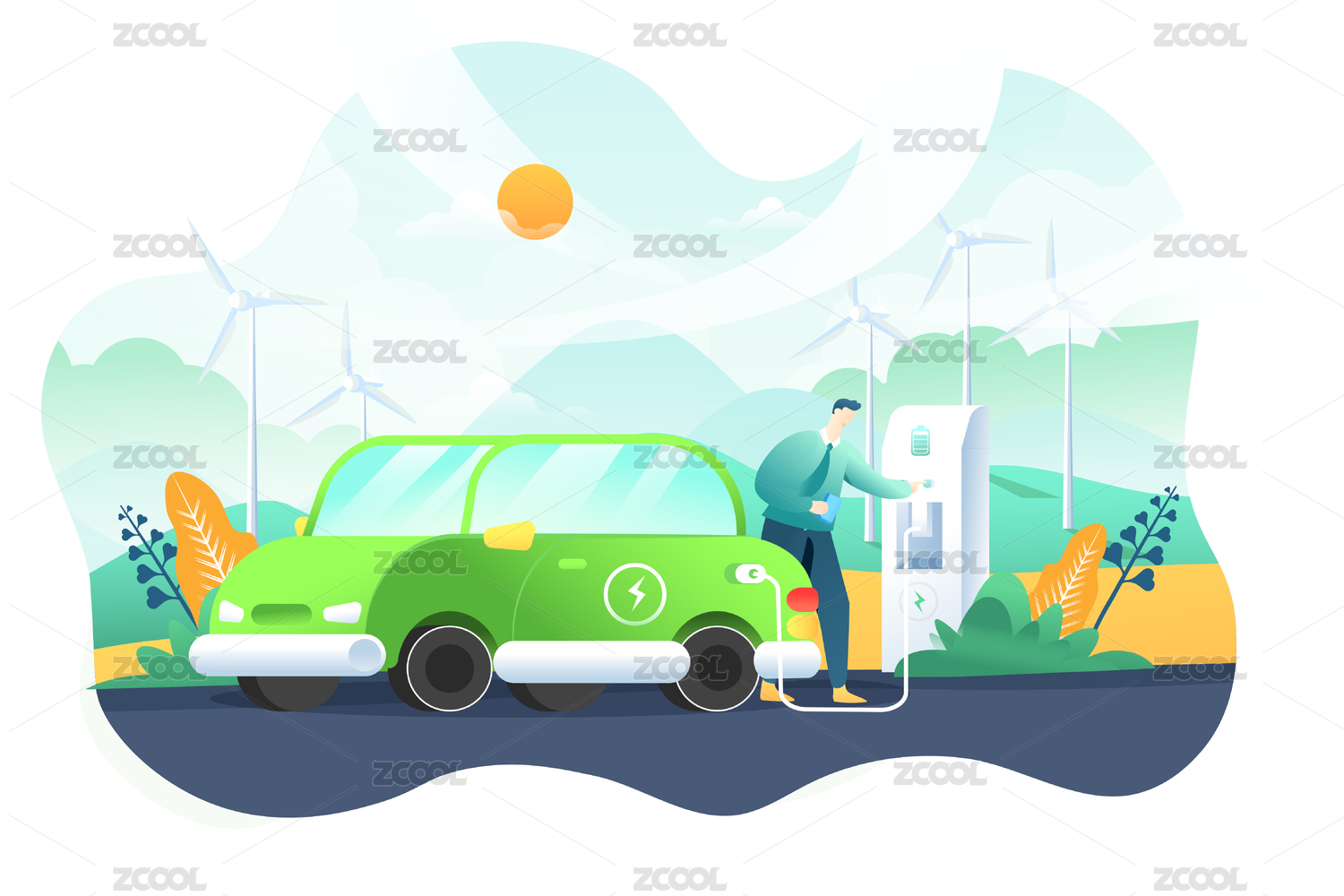 新能源汽車充電矢量插畫