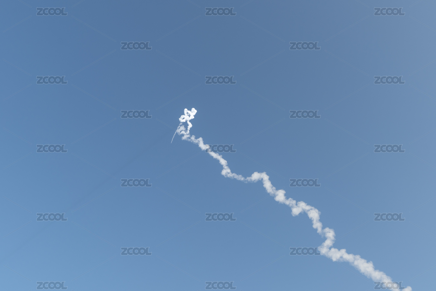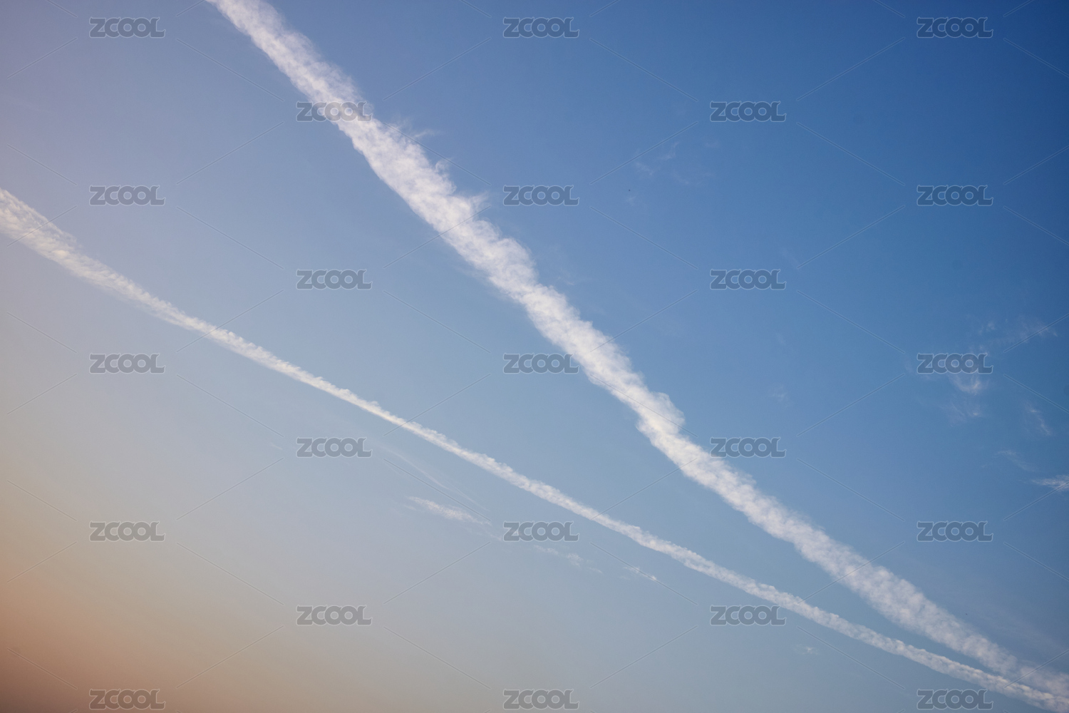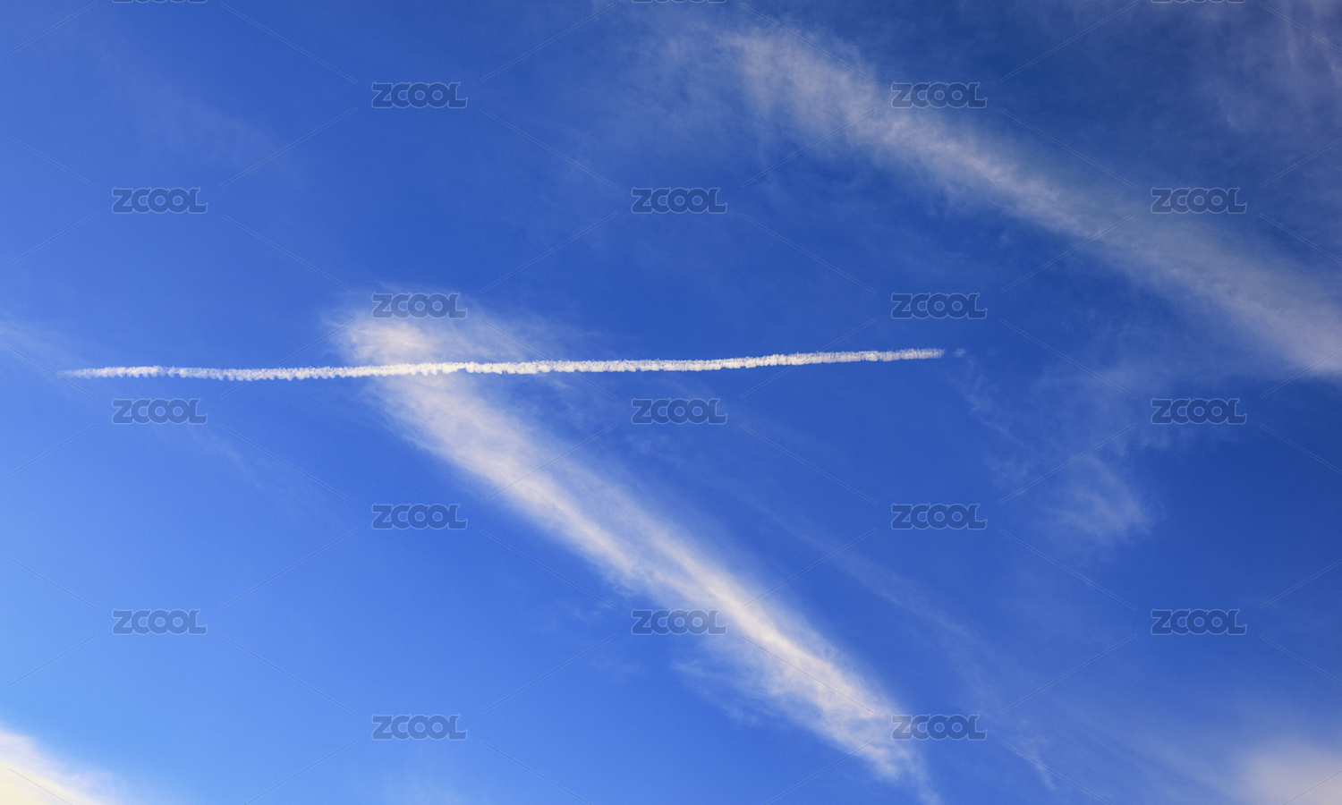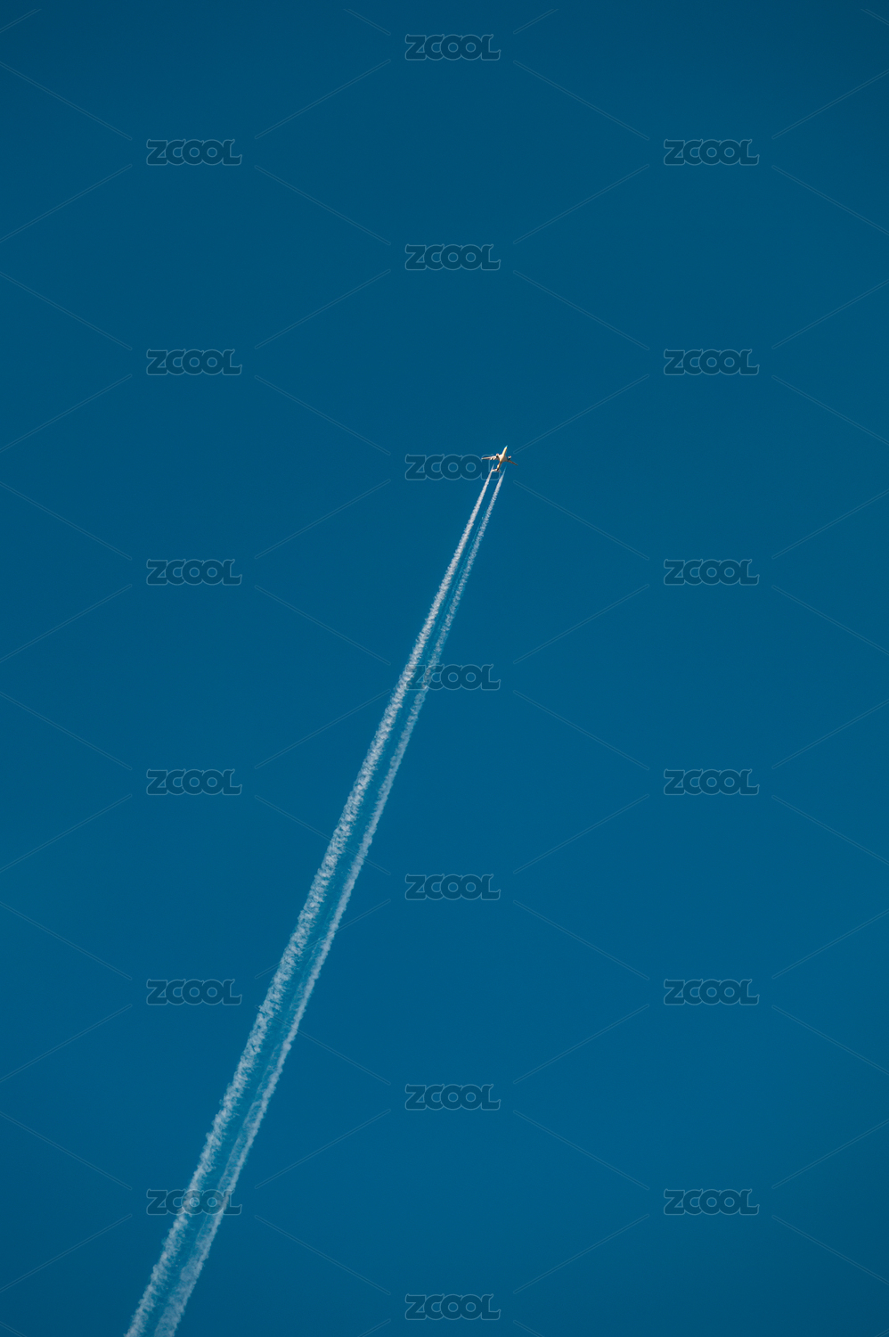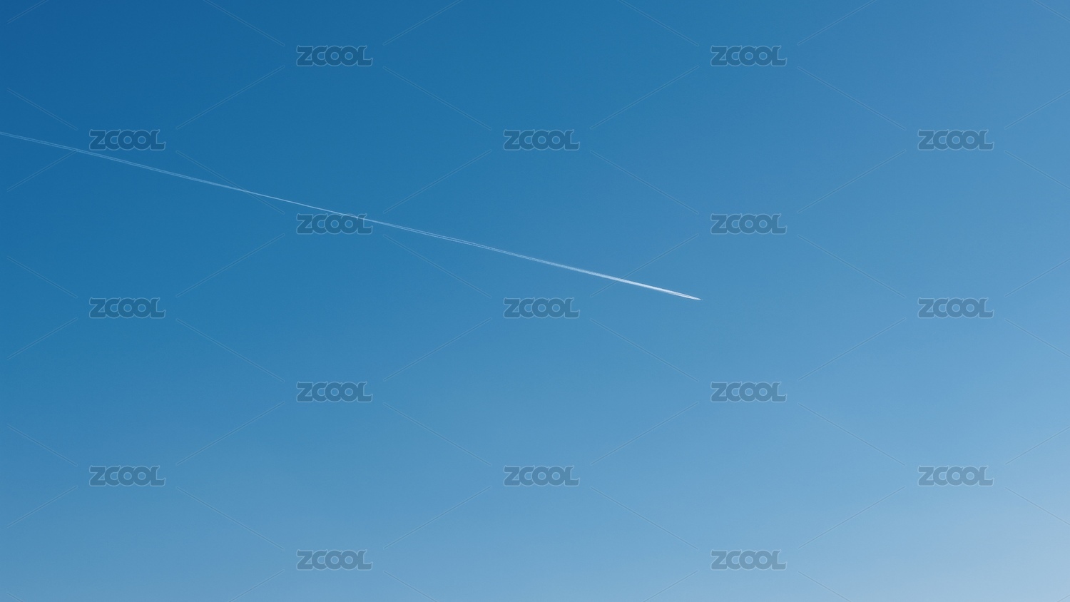 純凈天空中一架飛行的飛機產(chǎn)生的軌跡云