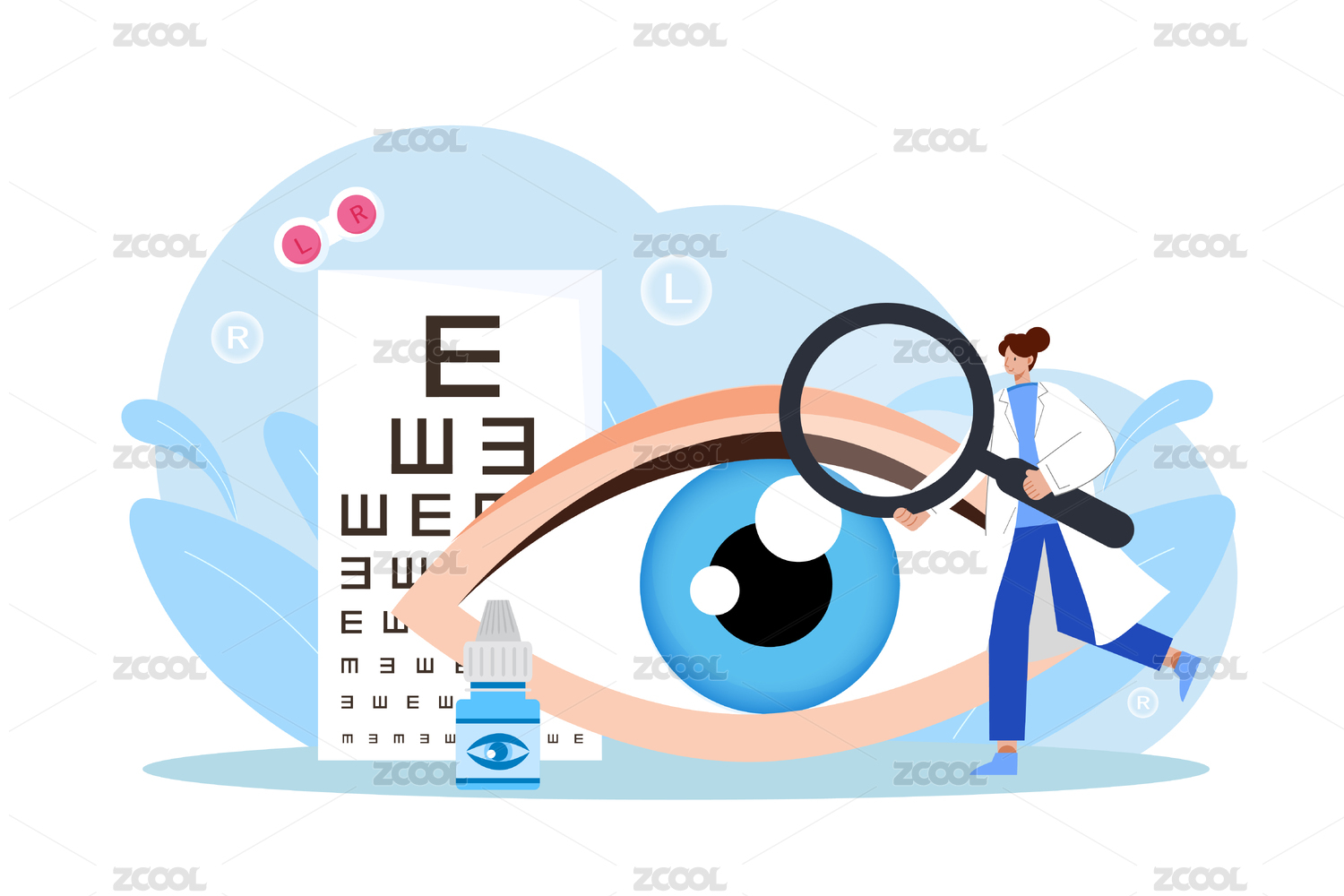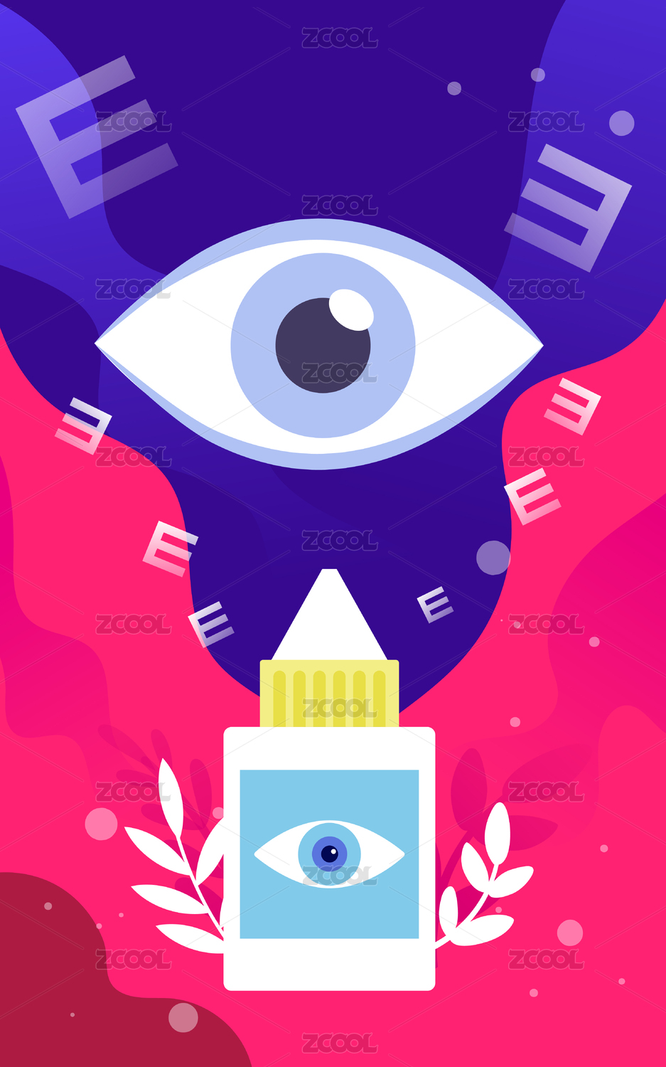 扁平風格眼球滴眼藥水 世界愛眼日插畫