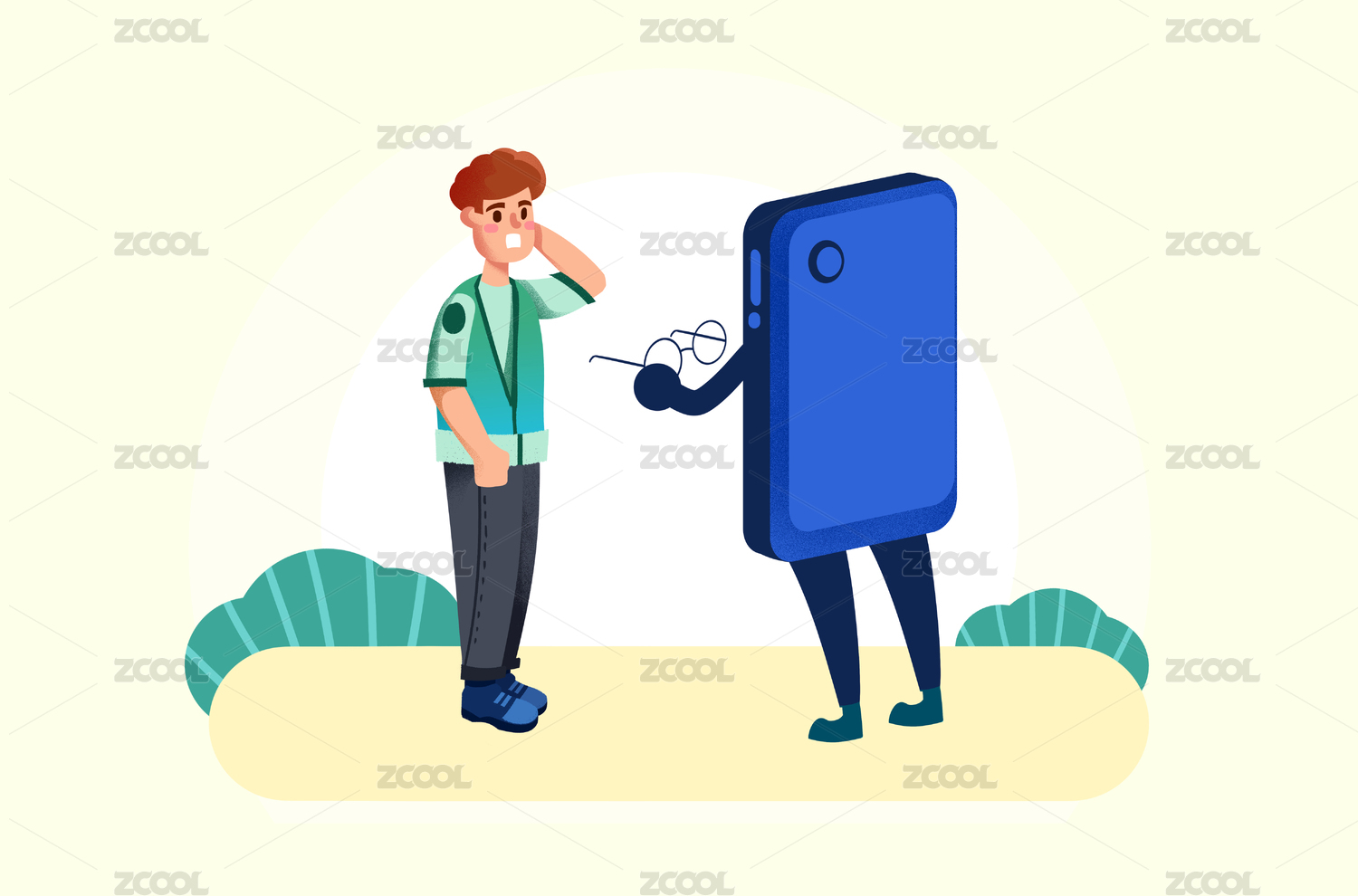 卡通手繪世界愛眼日手機給小孩戴眼鏡插畫