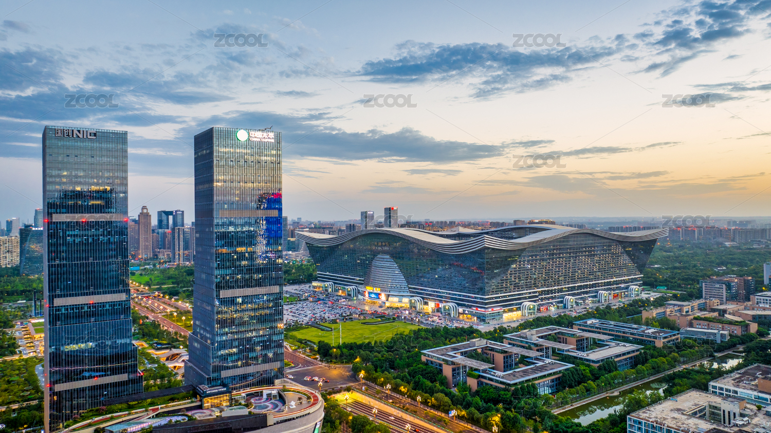 成都高新區(qū)環(huán)球中心成都SKP桂溪公園航拍