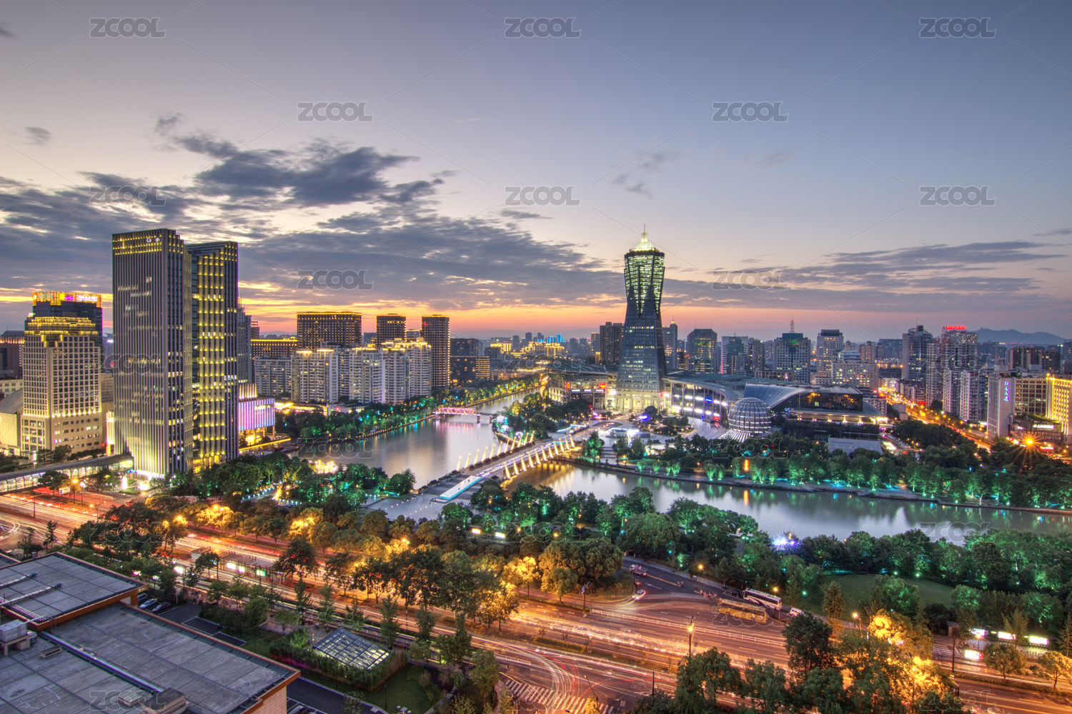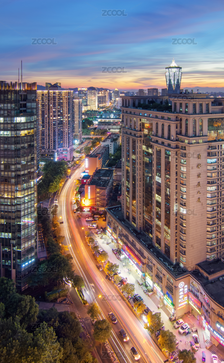 杭州環(huán)球中心日落晚霞夜景