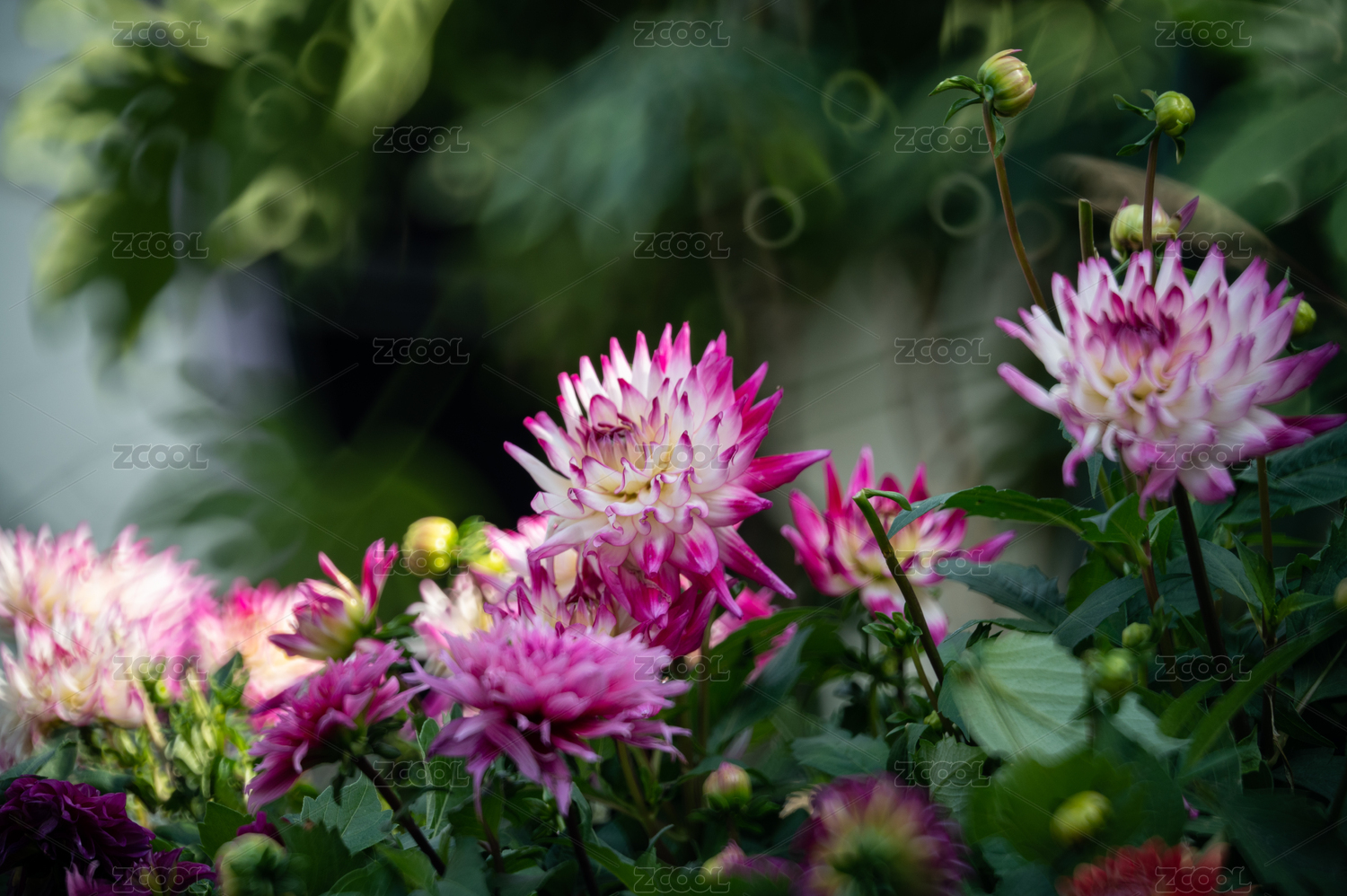 一片大麗花花簇特寫