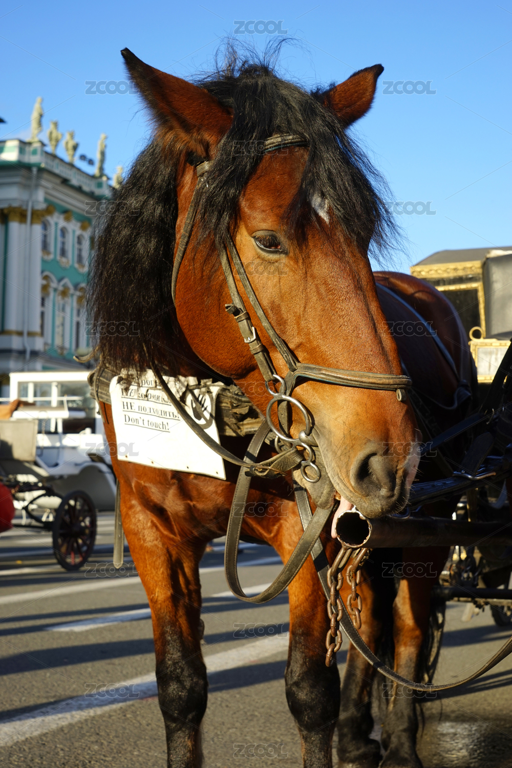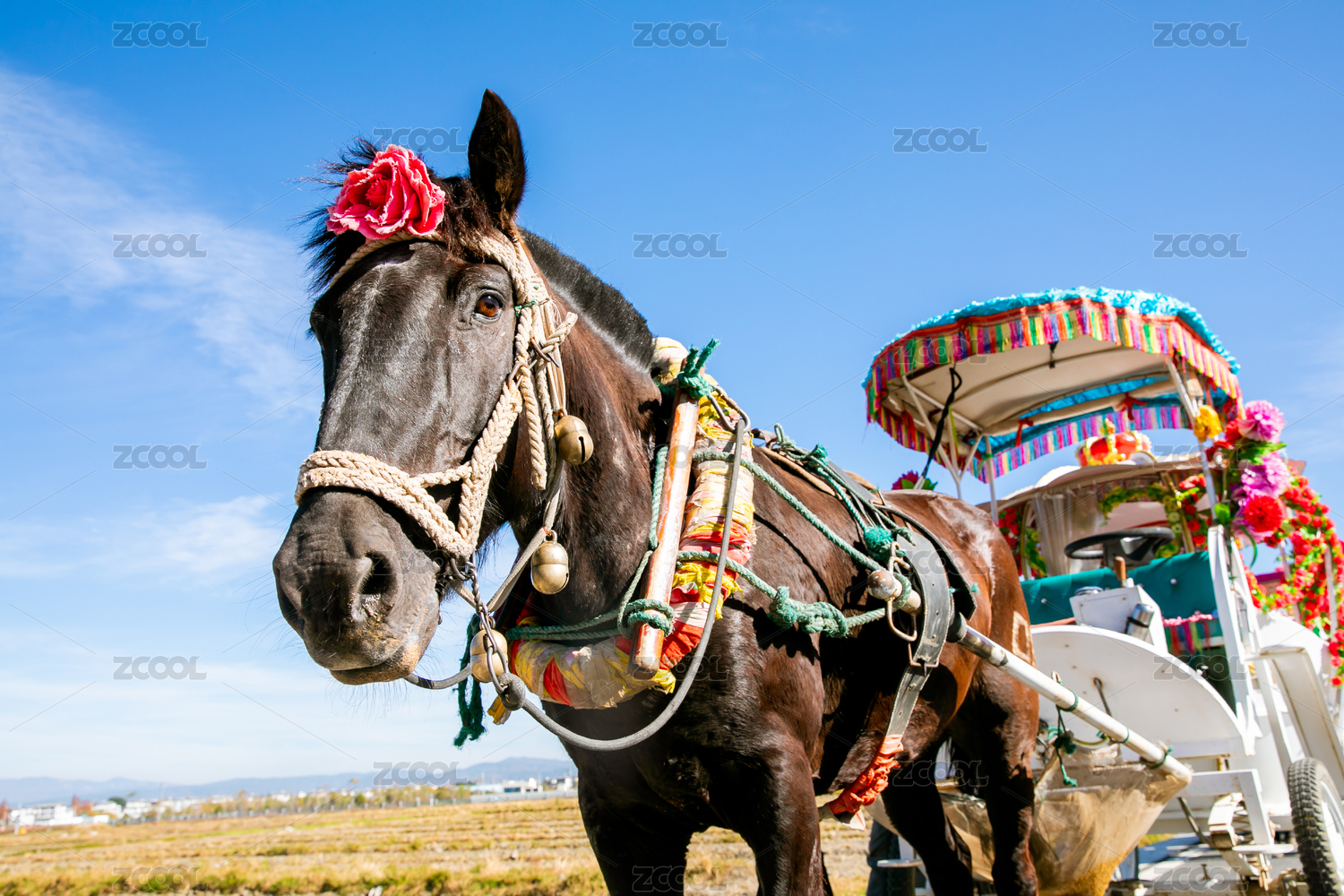 拉著花車的黑馬特寫