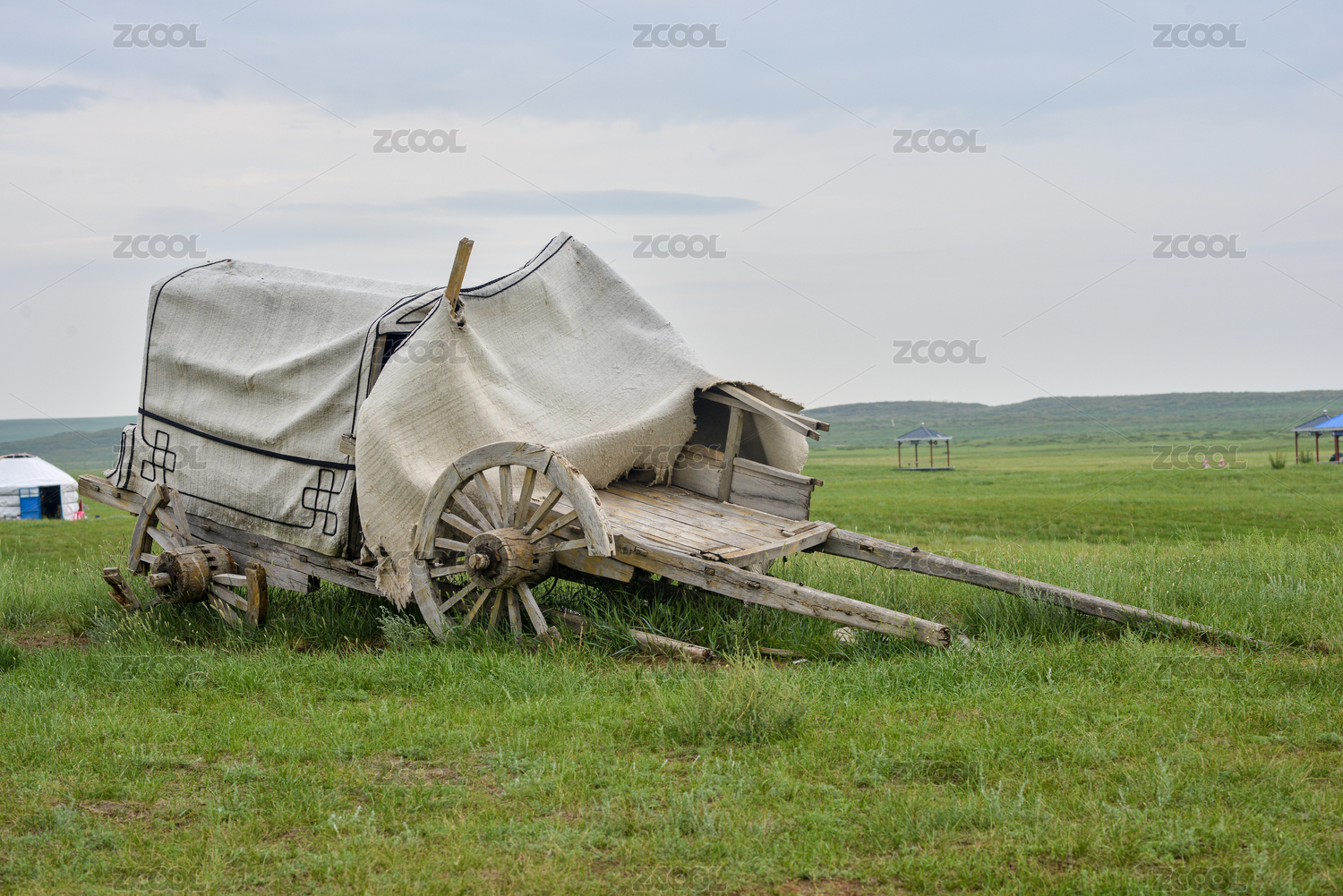 夏季大草原上廢棄的白色馬車