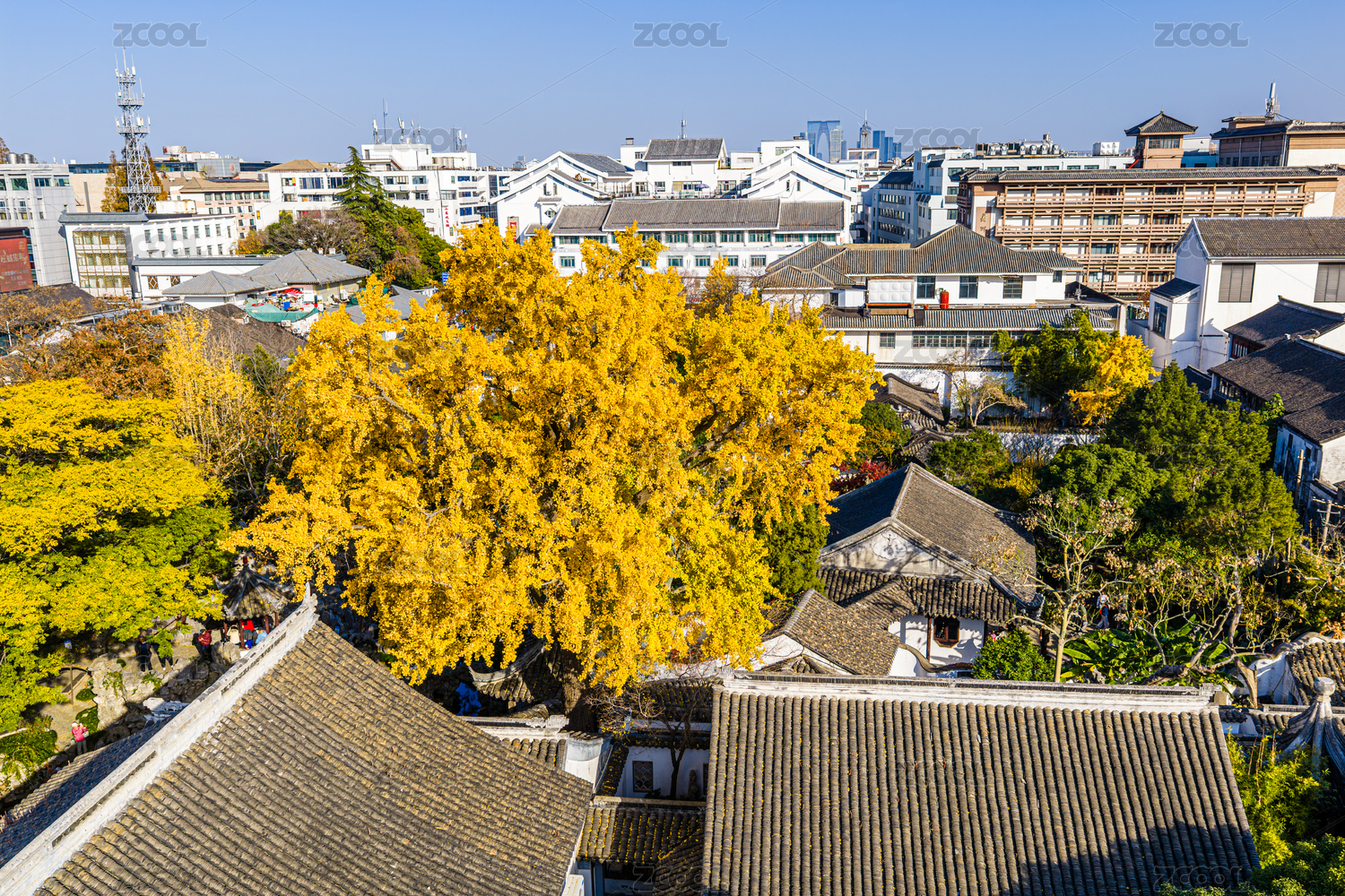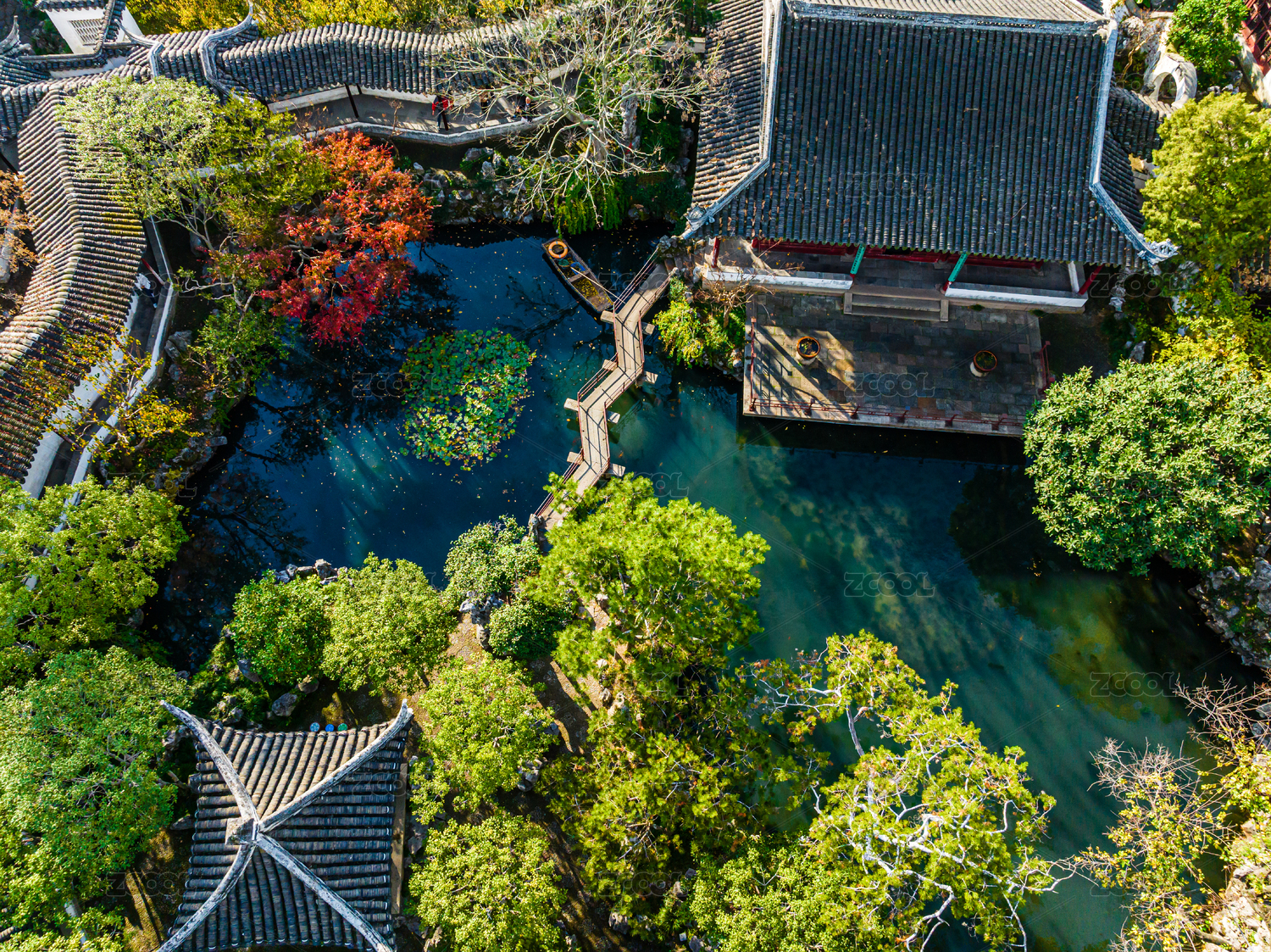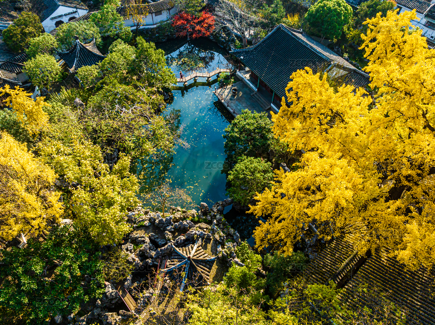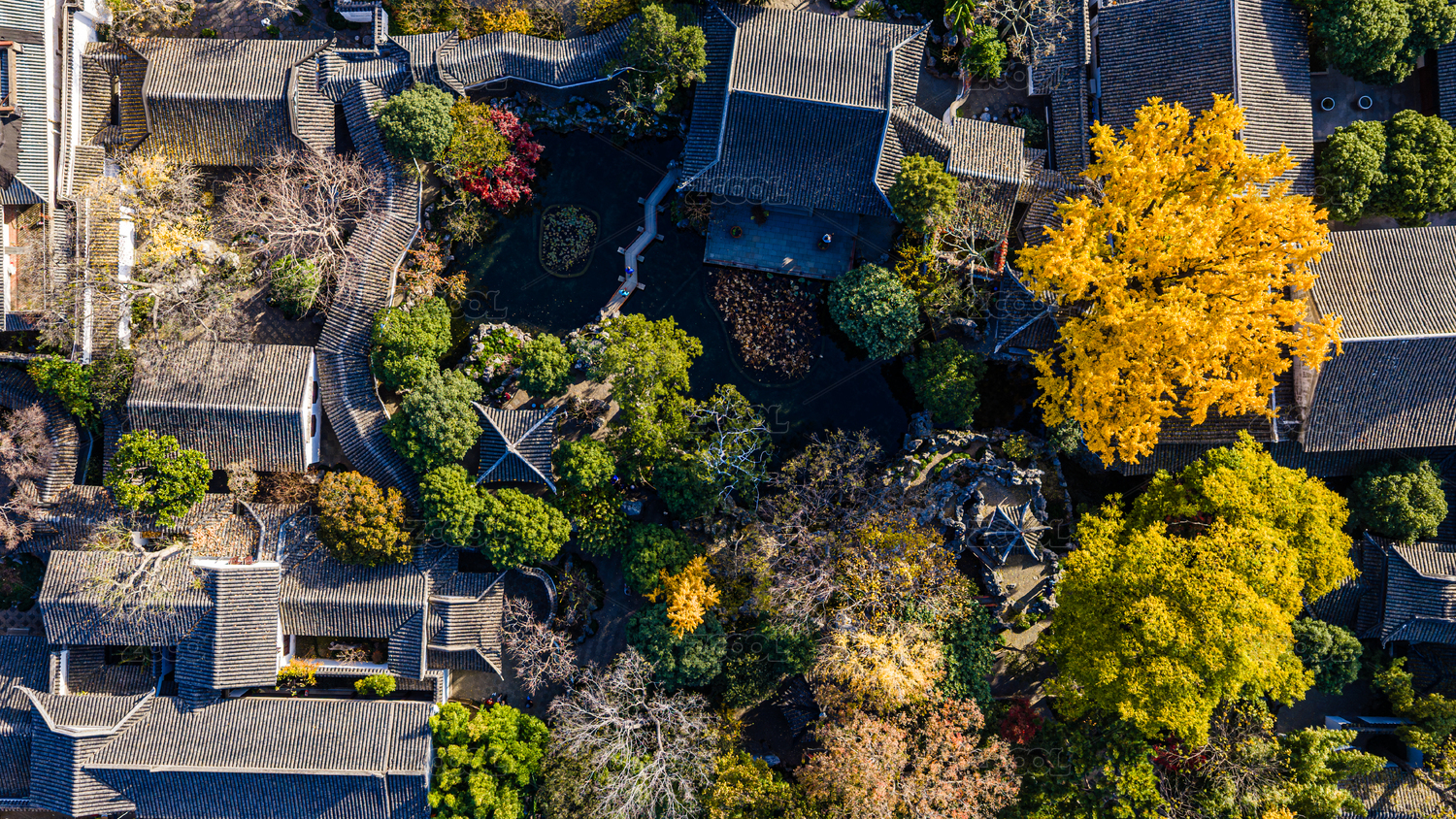中國(guó)江蘇蘇州園林怡園秋季航拍
