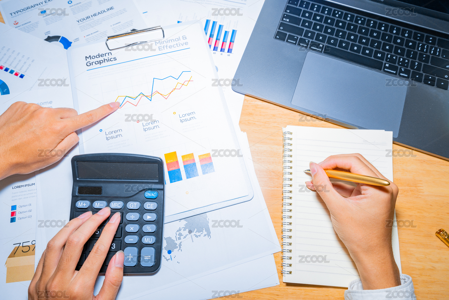 商務(wù)會(huì)計(jì)人士精算師使用計(jì)算器電腦計(jì)算分析記賬對(duì)賬算賬寫財(cái)務(wù)報(bào)告賬單清單