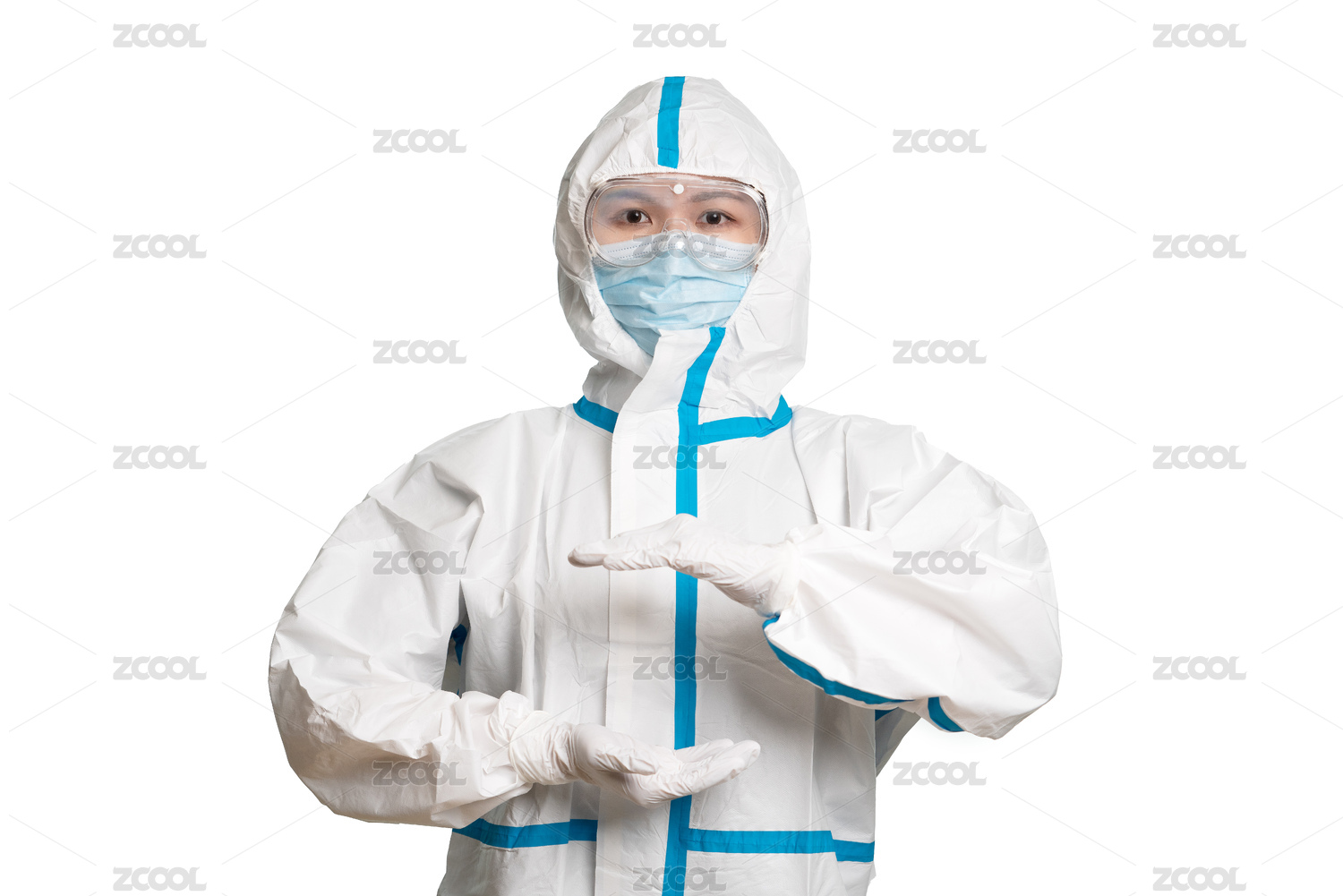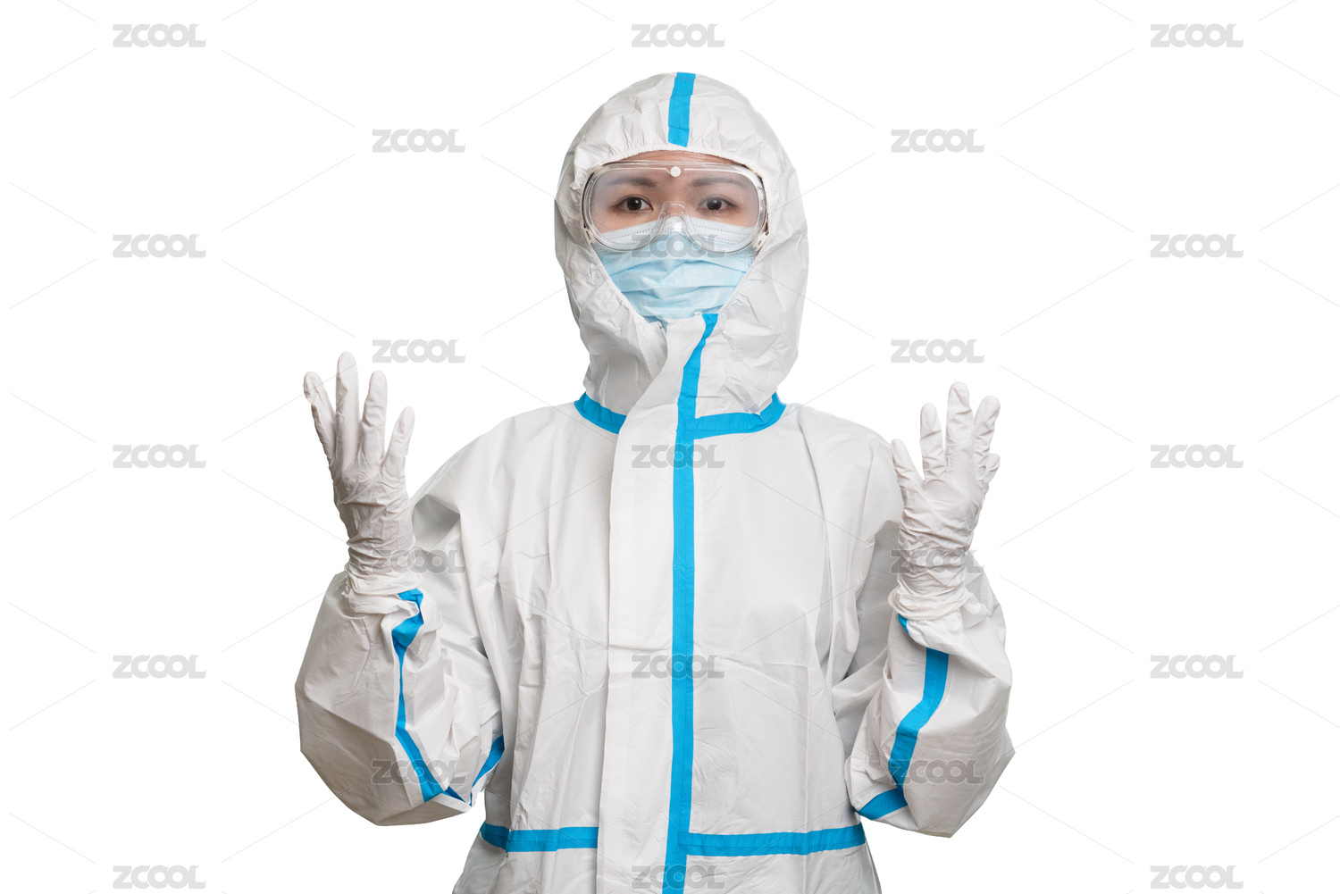 身穿防護服的醫(yī)務(wù)工作者雙手比圓形