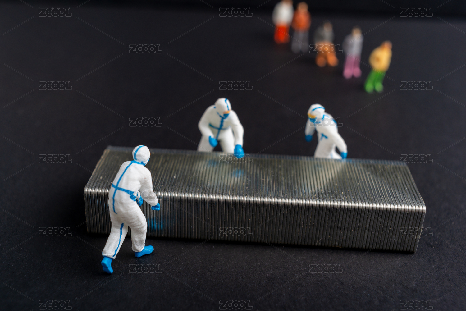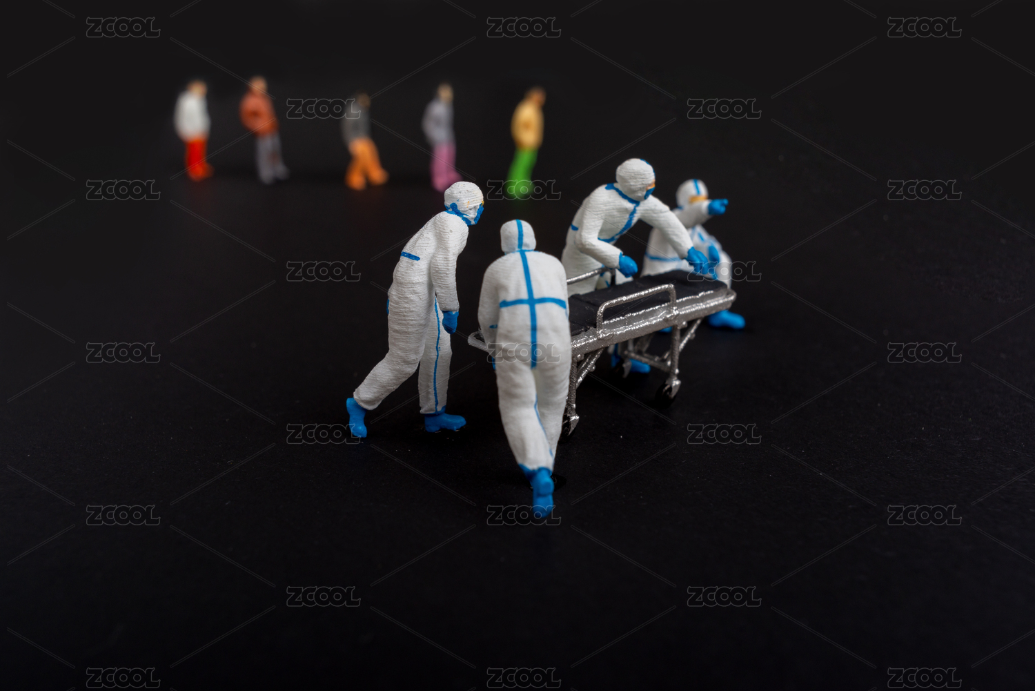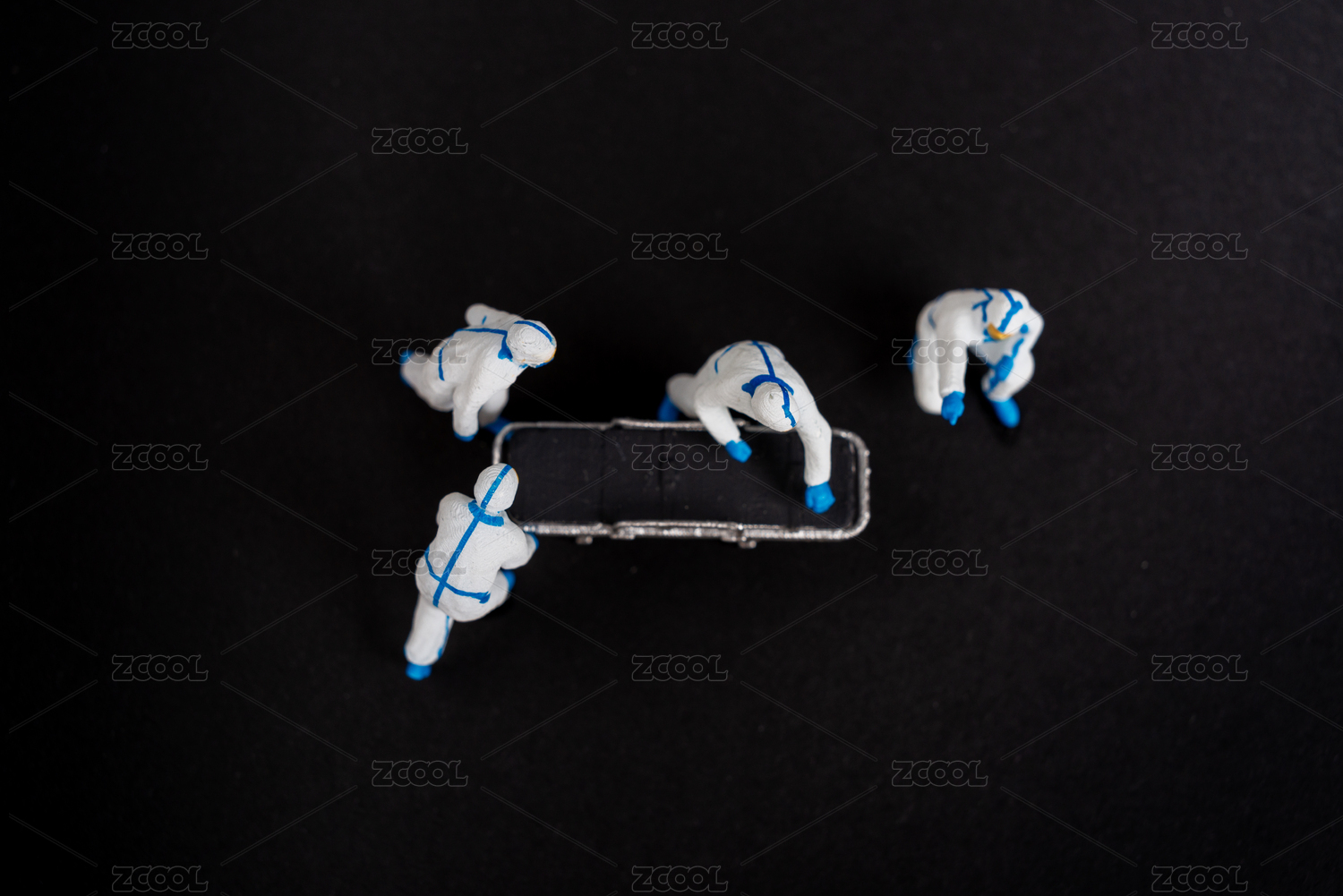 四名穿防護服推擔(dān)架車的醫(yī)生工作者