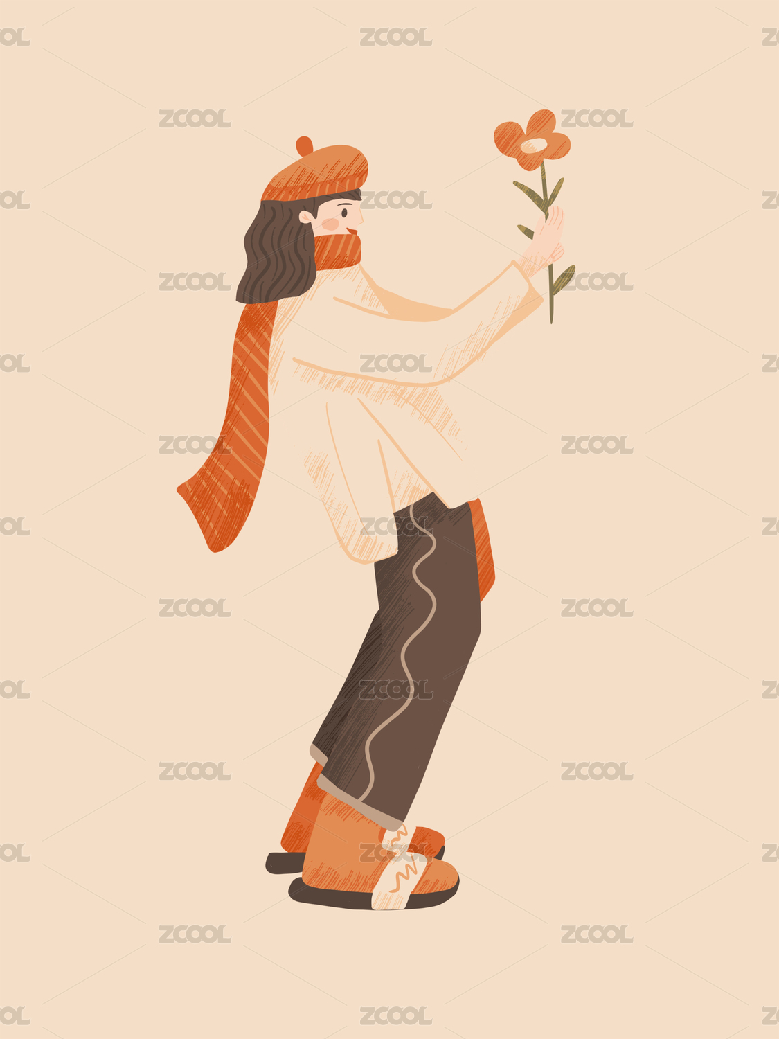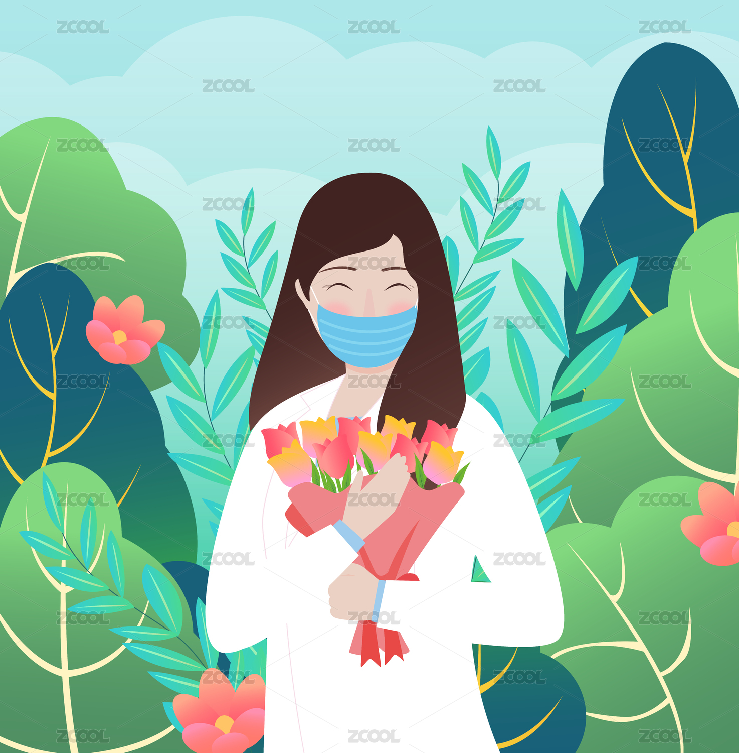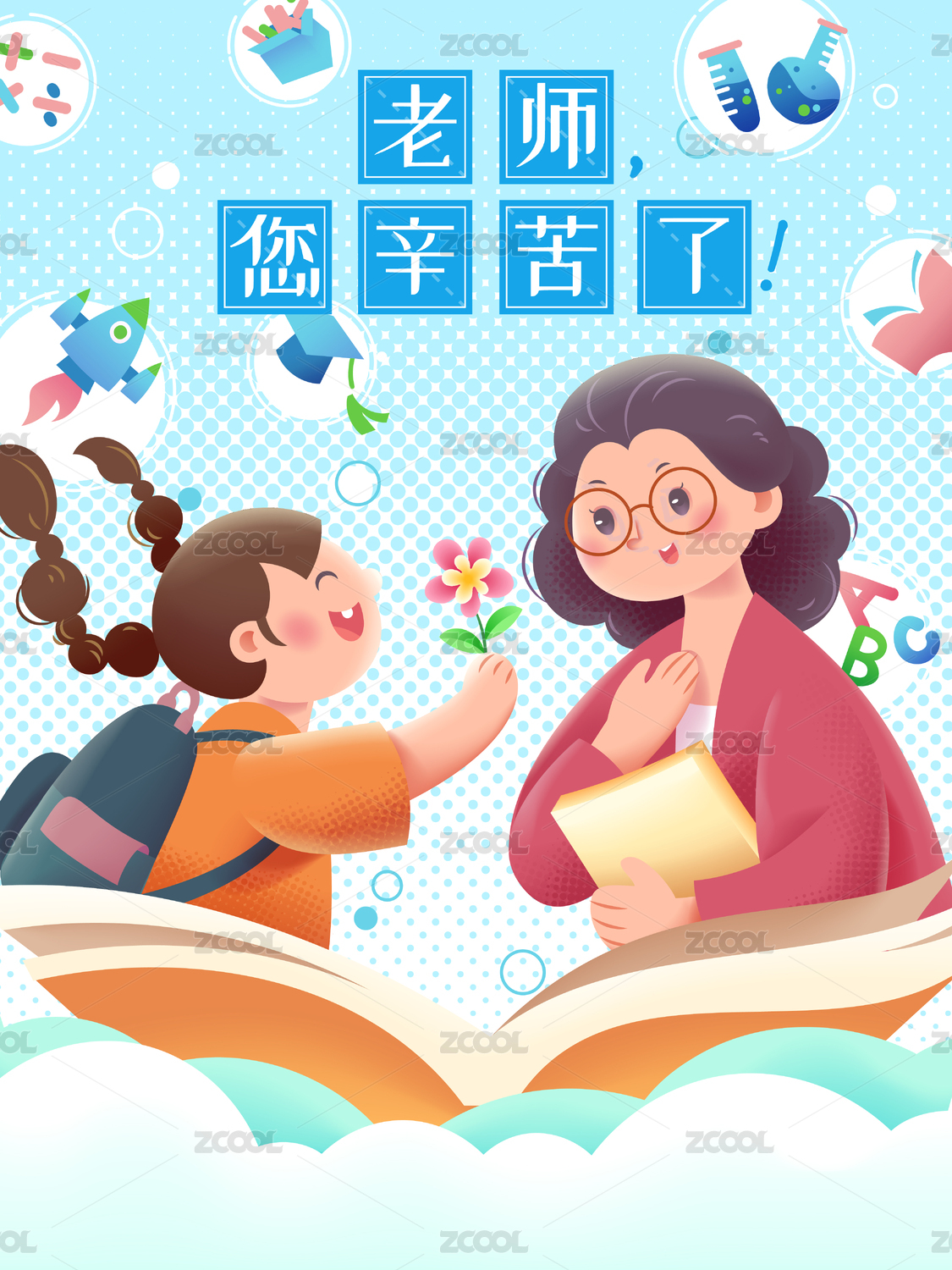 學生向老師獻花感謝師恩教師節(jié)手繪插畫